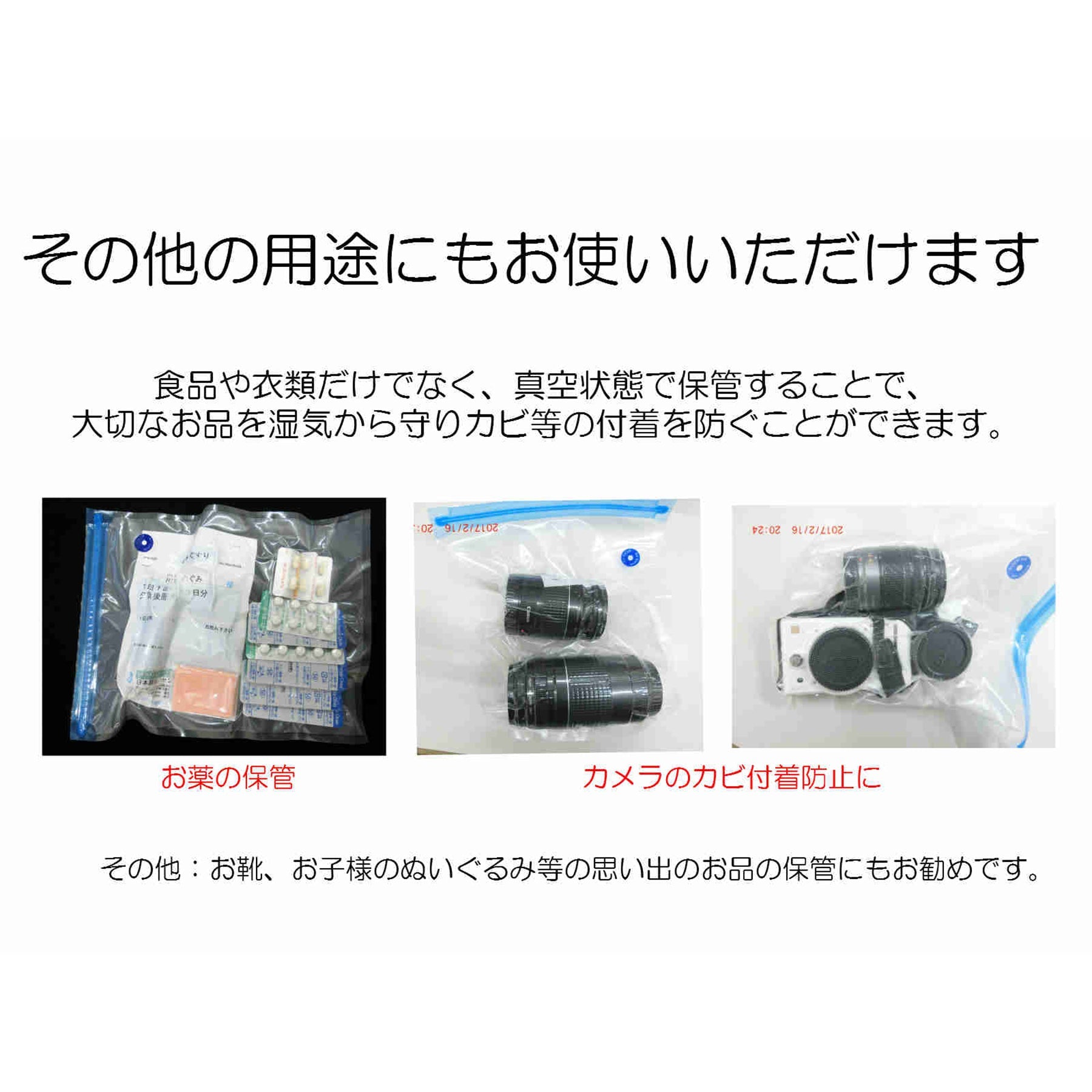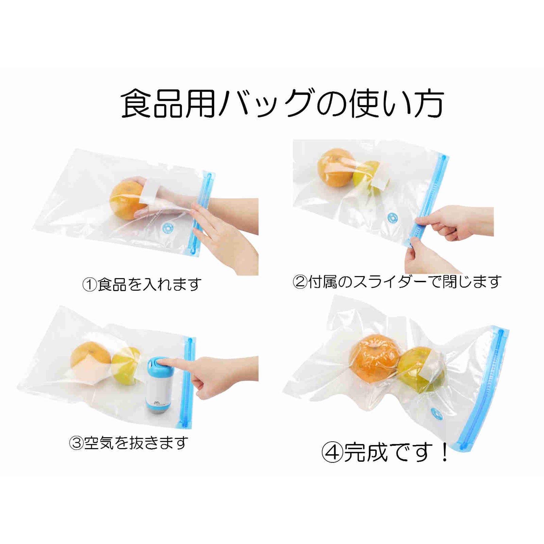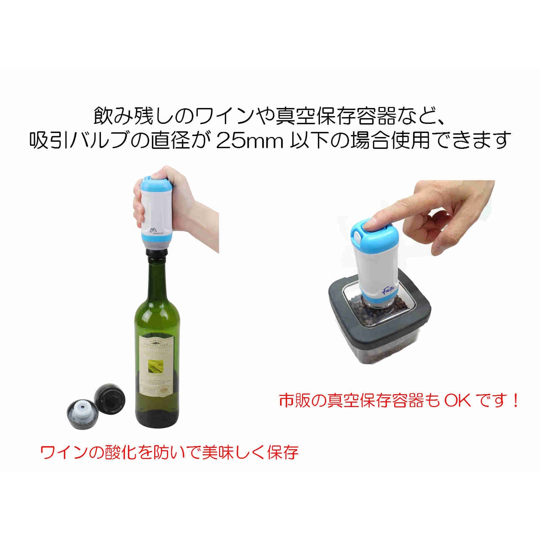 ●更には、お持ちのフードバッグや真空保存容器など、吸引バルブの直径が25mm以下の場合であれば使用できます。