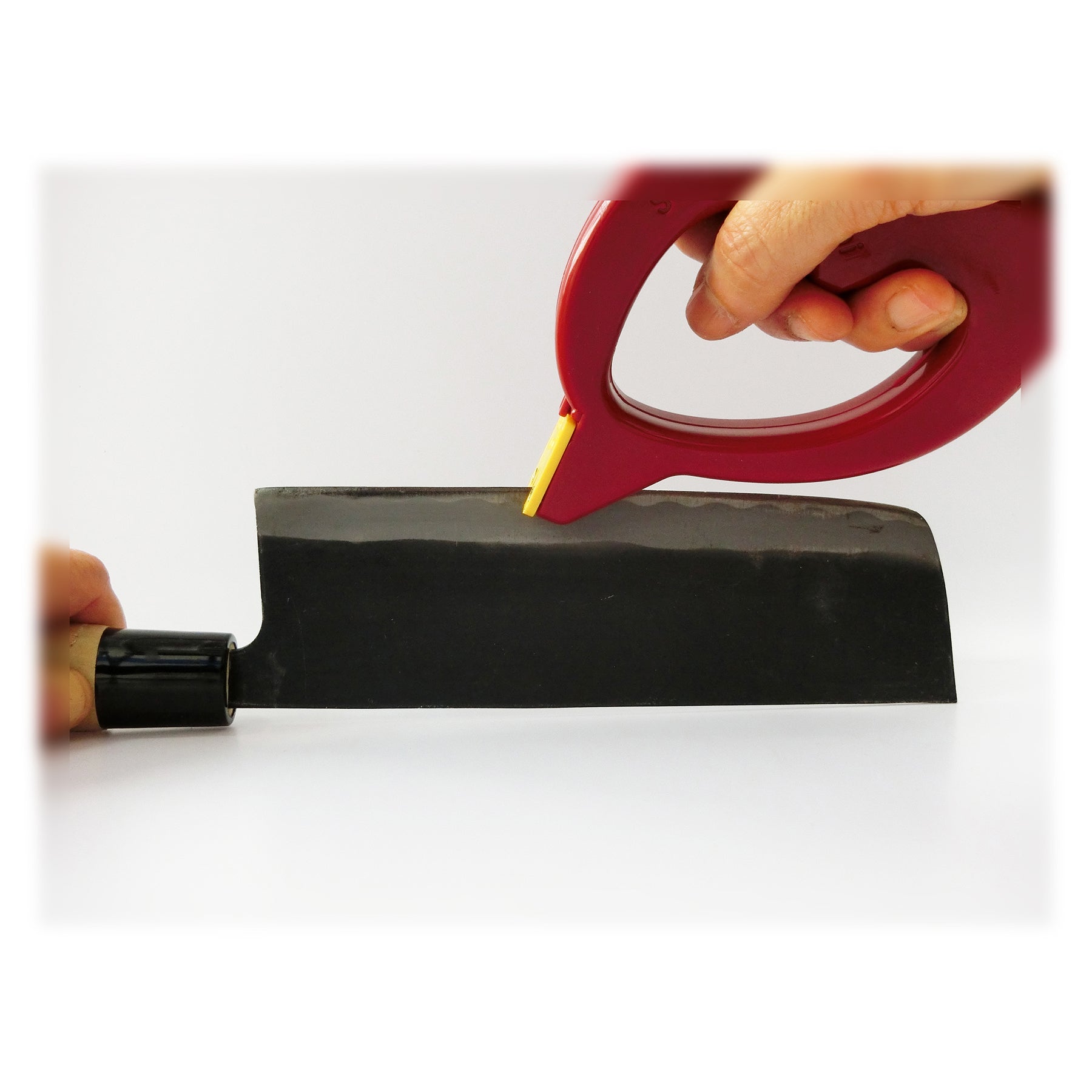 ●刃の角度に自動的に合わせて研ぐので、誰がやっても簡単に研げます。