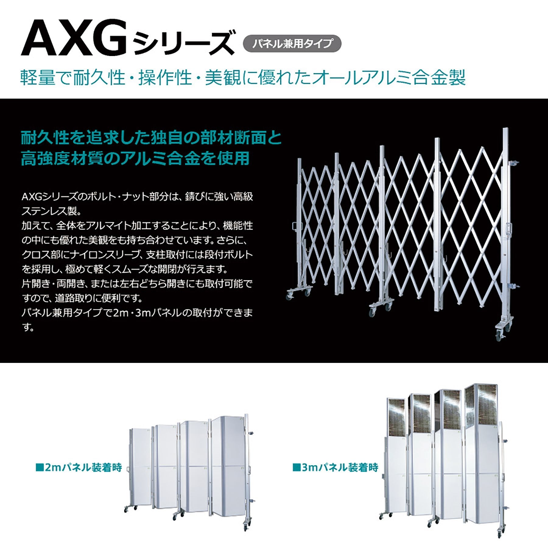 ●別売りアルミクロスキャスターゲート用のパネル、2m・3mの取付ができます。