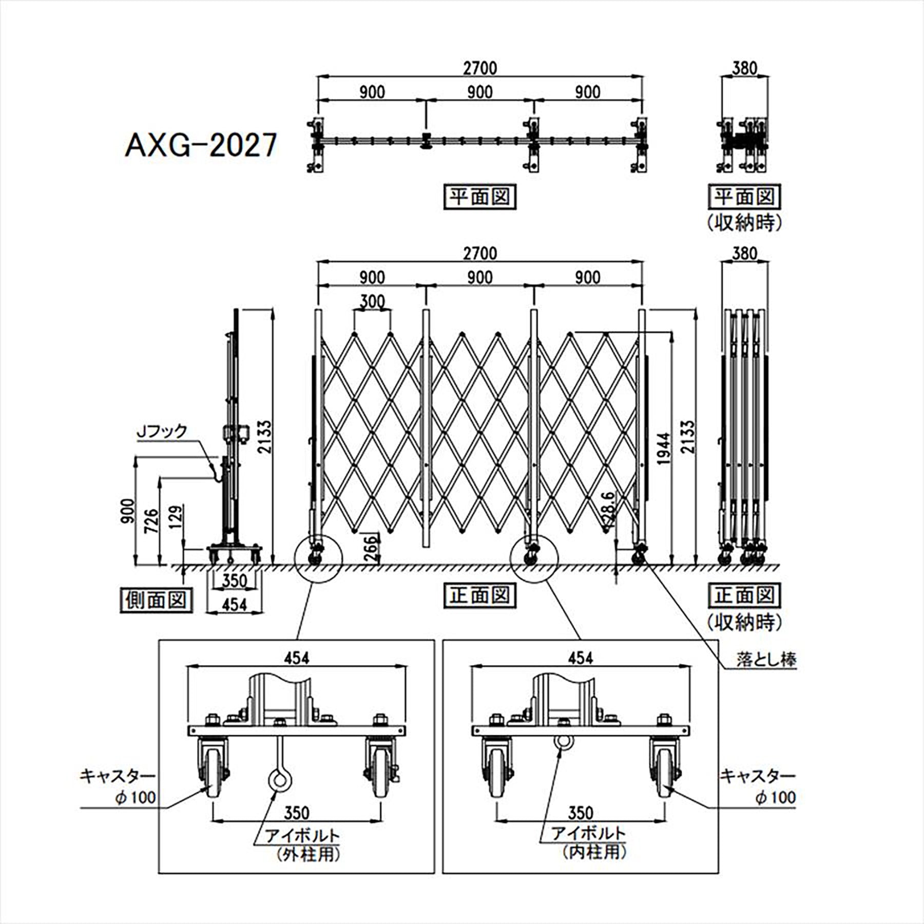 アルミクロスキャスターゲート(パネル無し) H200×W270cm AXG-2027