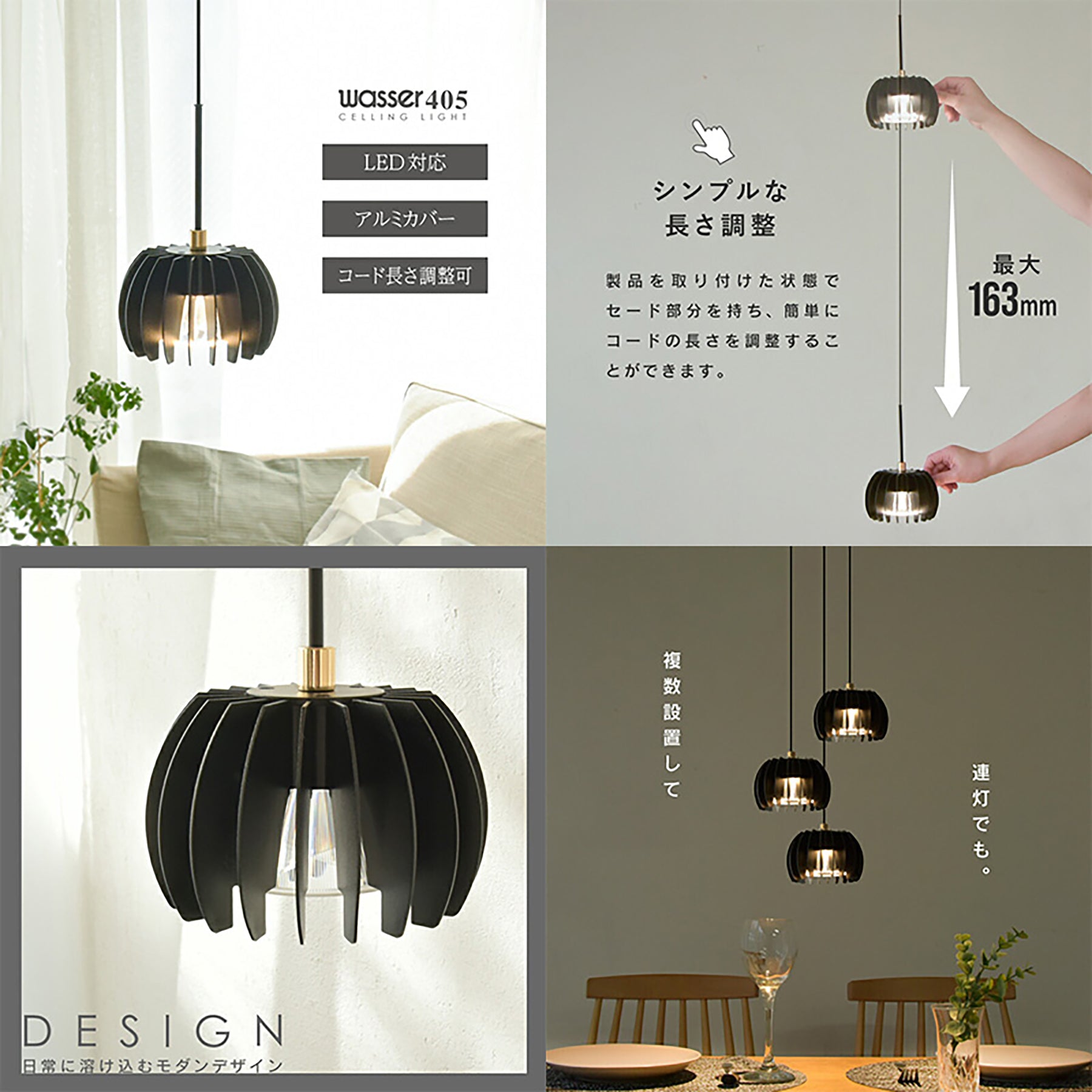 ●コードの長さ変更はシェード部分を上下に動かすだけででき、便利でスマートな機能性が魅力です。