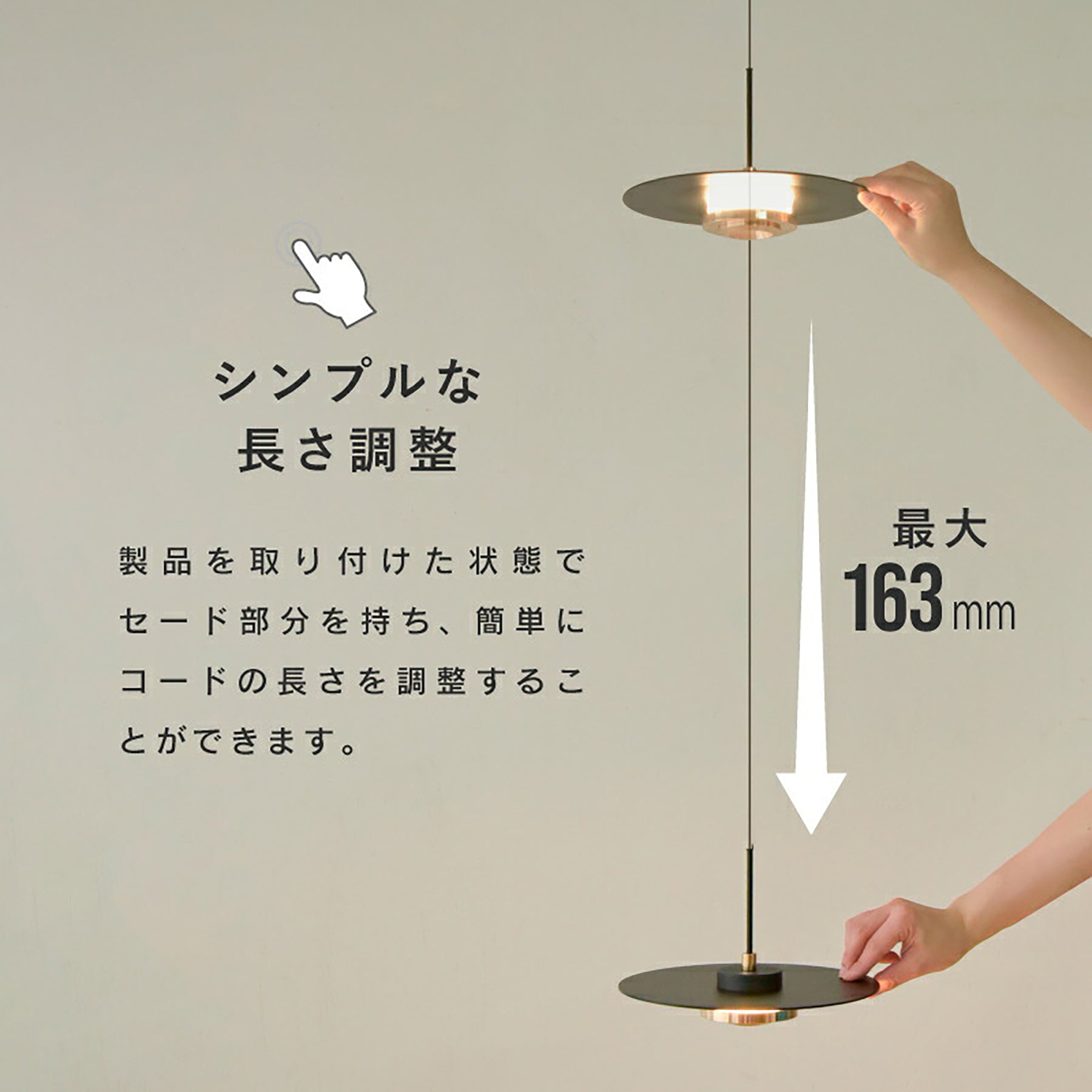 ●コードの長さ変更はシェード部分を上下に動かすだけで便利でスマートです。