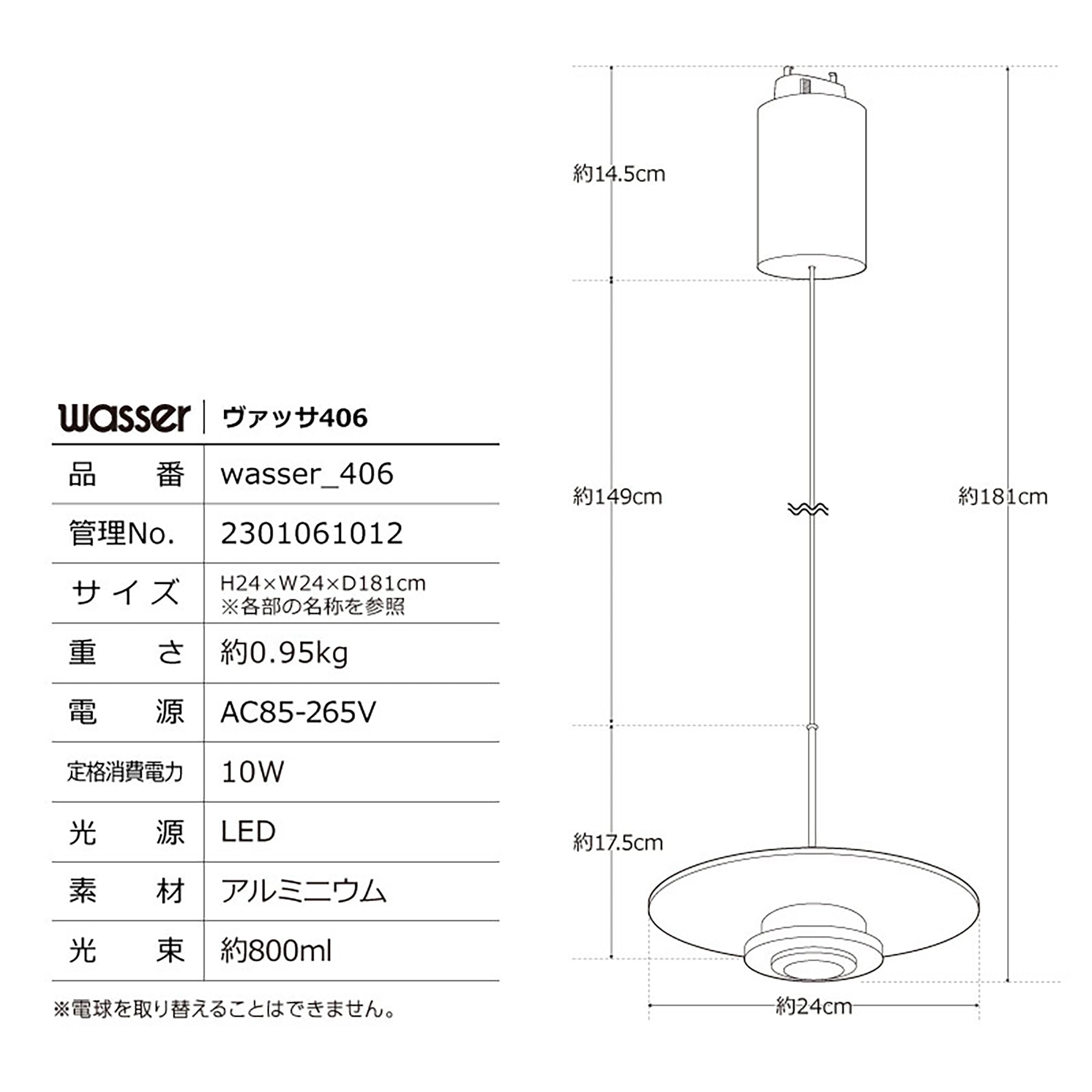 電球を取り替えることはできません。 コードをシェードの根本から折り曲げないでください。 断線につながります。 本製品は柔らかい光のため、メインライトとしてご活用いただくには明るさが不十分な場合がございます。 サブライトとしてご活用ください。 |