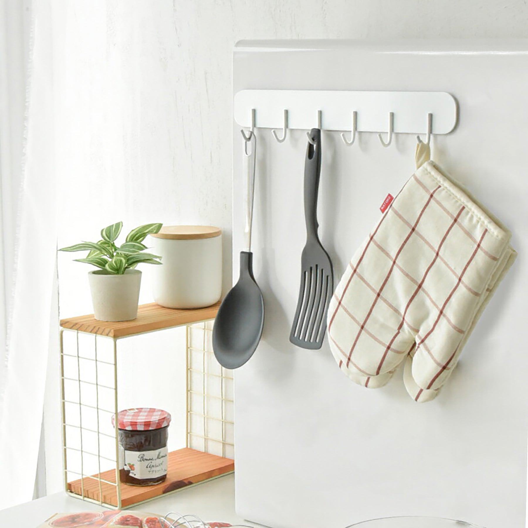 ●6つのフックで、調理器具をまとめ掛けできます。