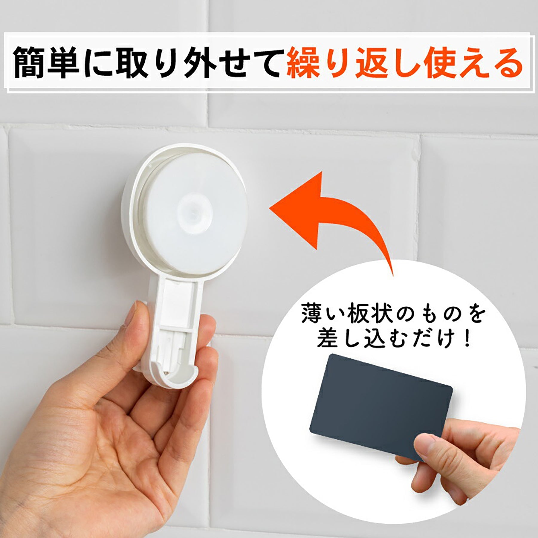 吸盤フック プッシュ式 お風呂 超強力 耐荷重5kg 2個入 防水 強吸着