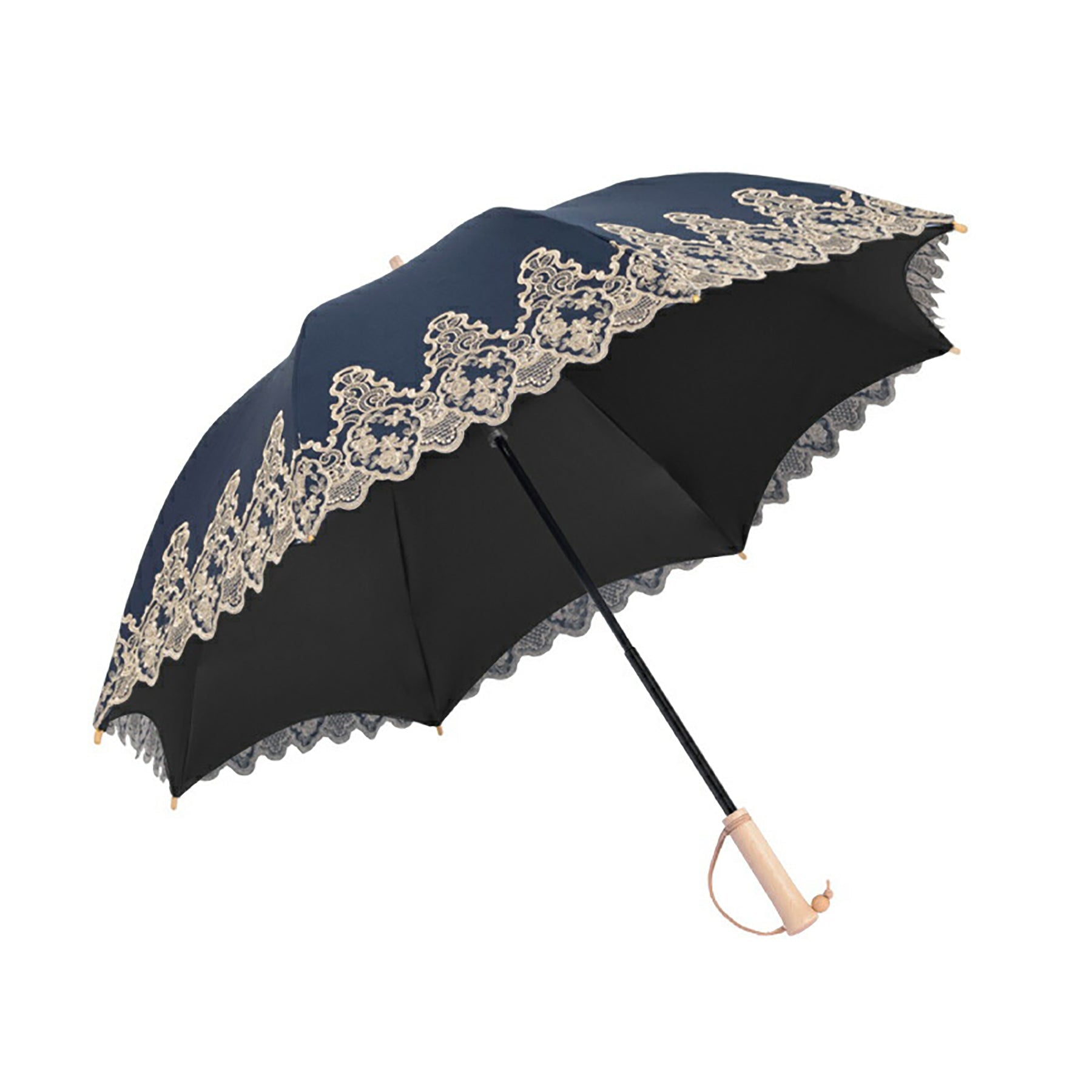 晴雨兼用長傘 日傘 完全遮光 2段階長さ調整 軽量 8本骨 木の持ち手 ネイビー