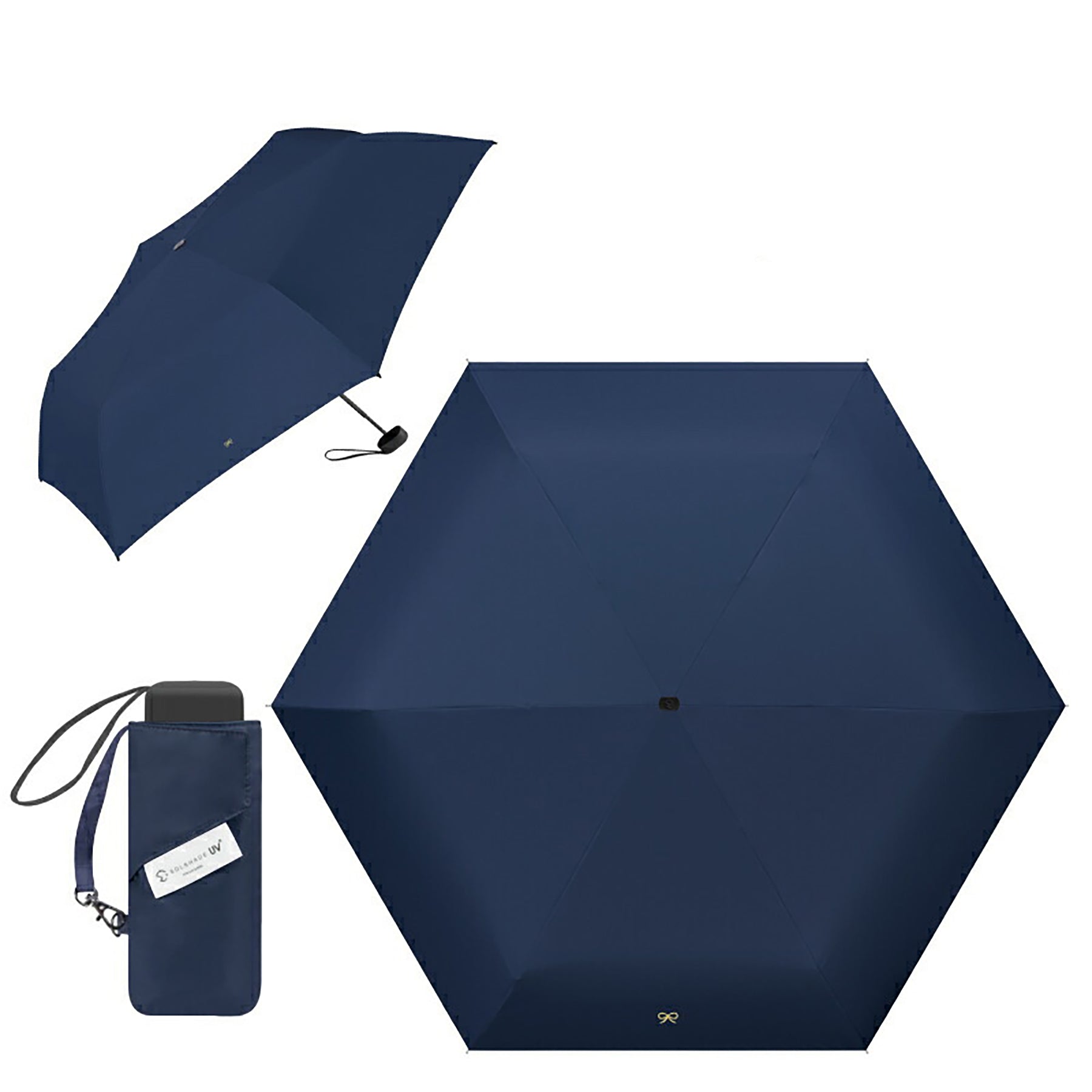 折りたたみミニ日傘 5段折り 超軽量 完全遮光 晴雨兼用 ネイビーリボン