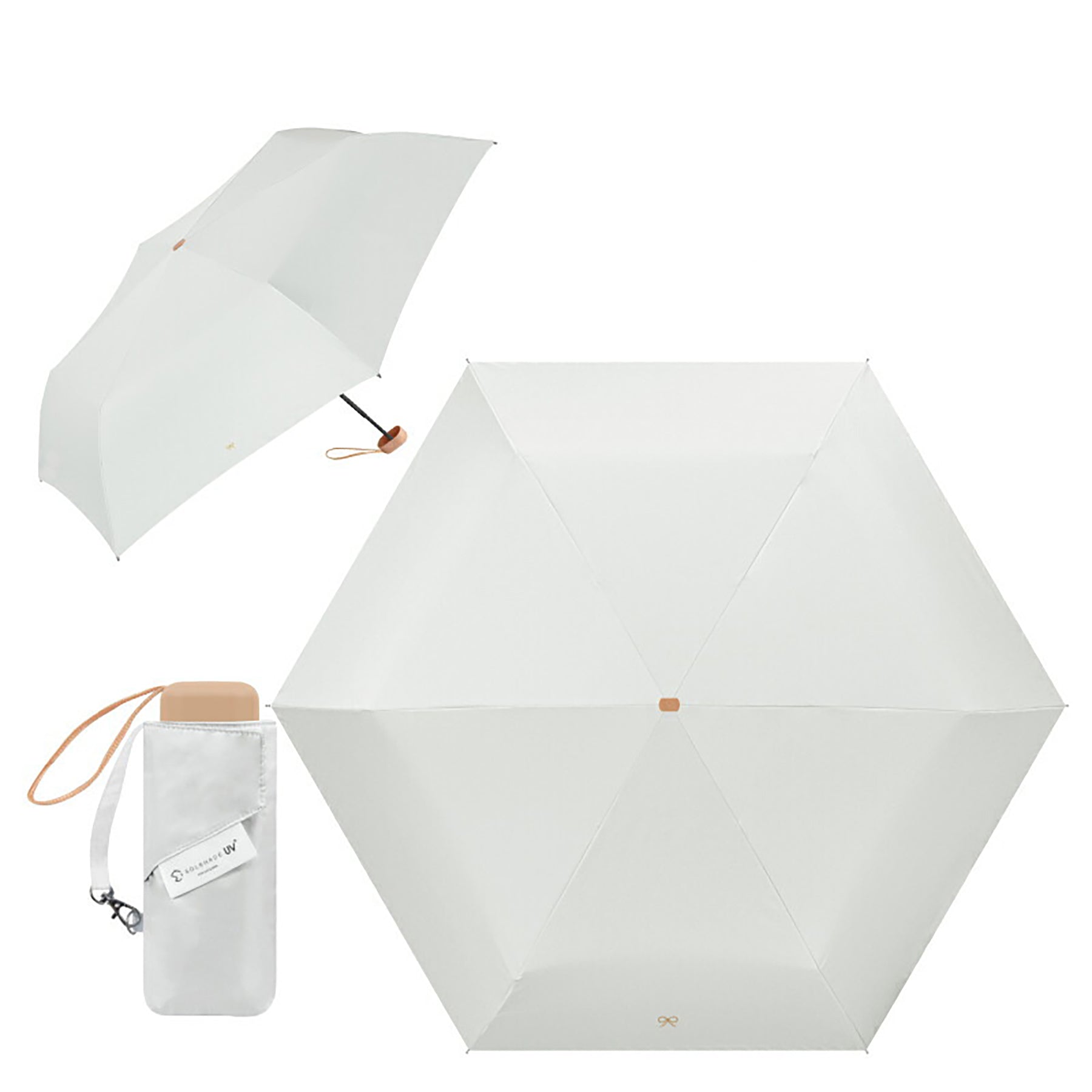 折りたたみミニ日傘 5段折り 超軽量 完全遮光 晴雨兼用 アイボリーリボン