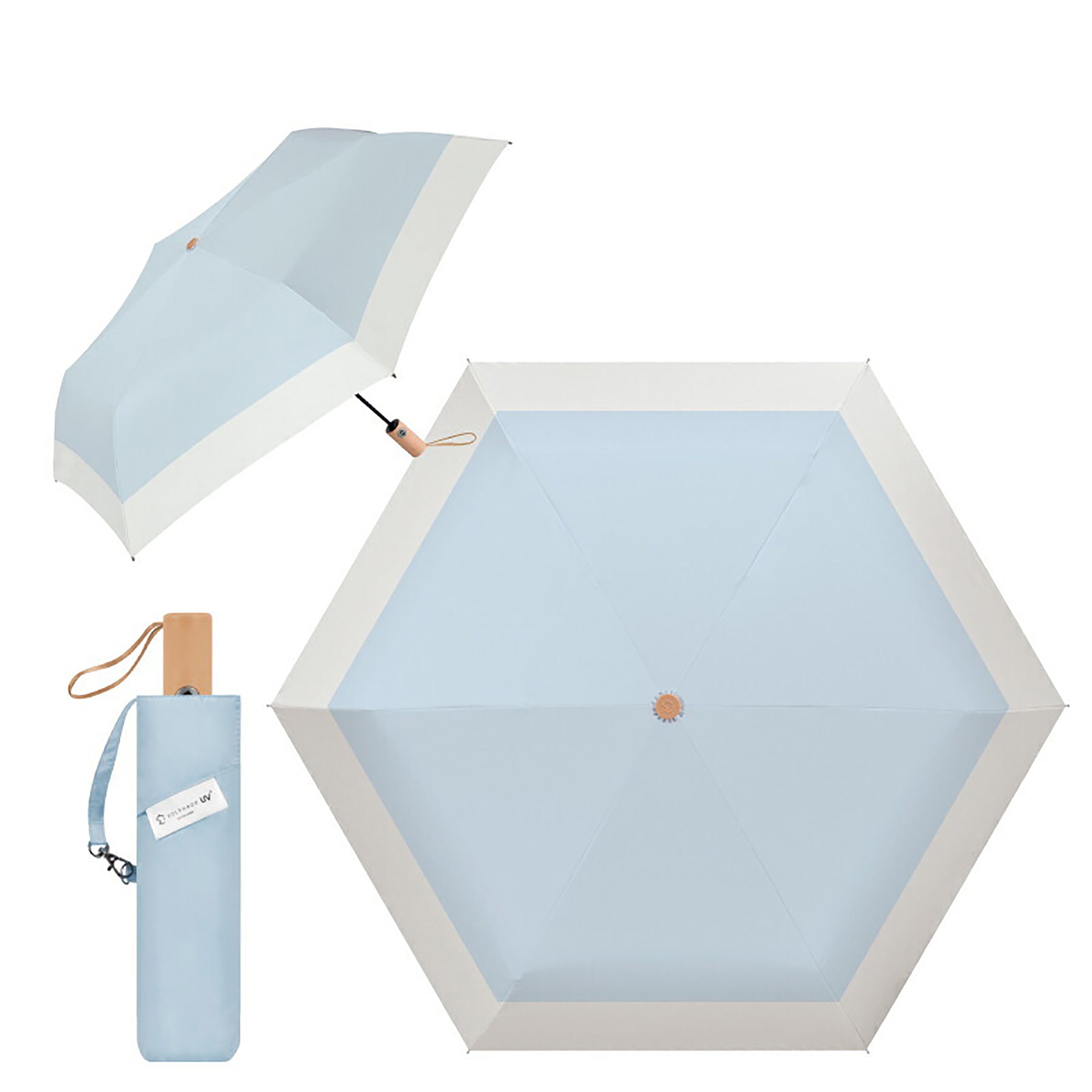 折りたたみ日傘 ワンタッチ自動開閉 軽量6本骨 完全遮光 ブルー/アイボリー