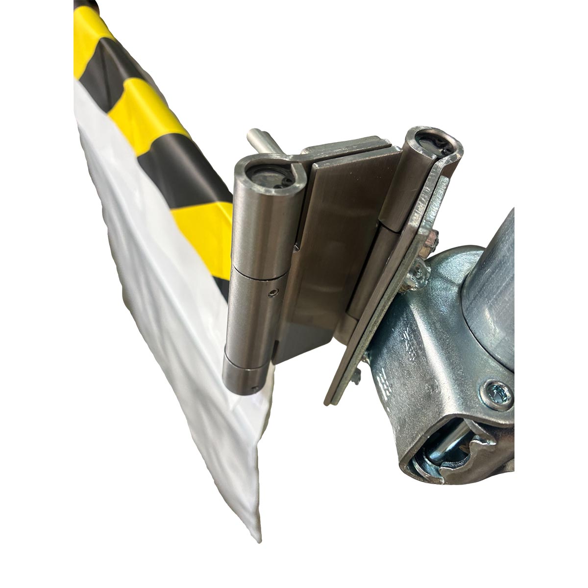 ●ポケット垂れ幕のマジックテープをくっつけたままスライドイン装着ができ、現場での作業効率を向上させます。