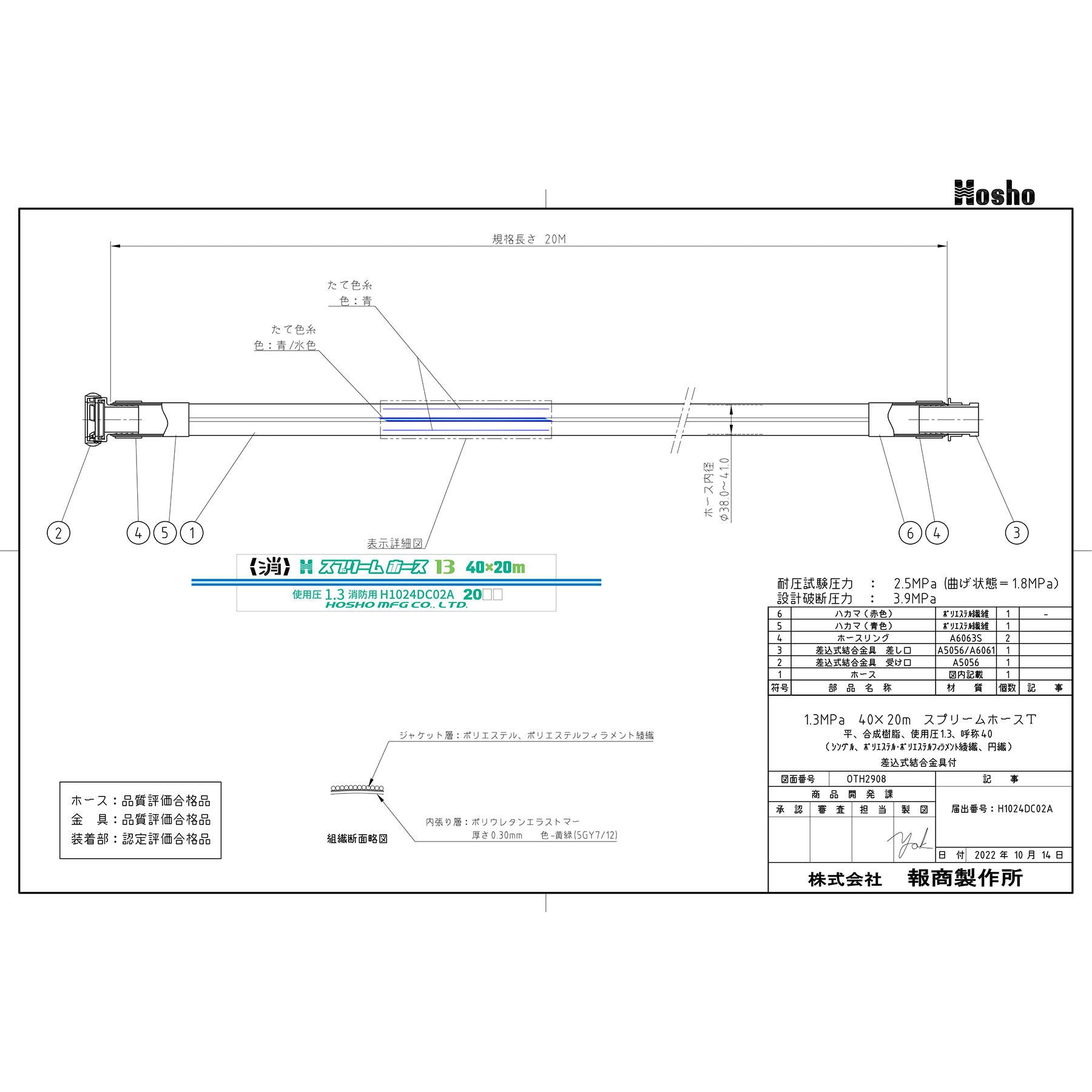 スプリームホース(連結送水管・屋外消火栓用ホース)1.3MPa 40A×20m 差込式