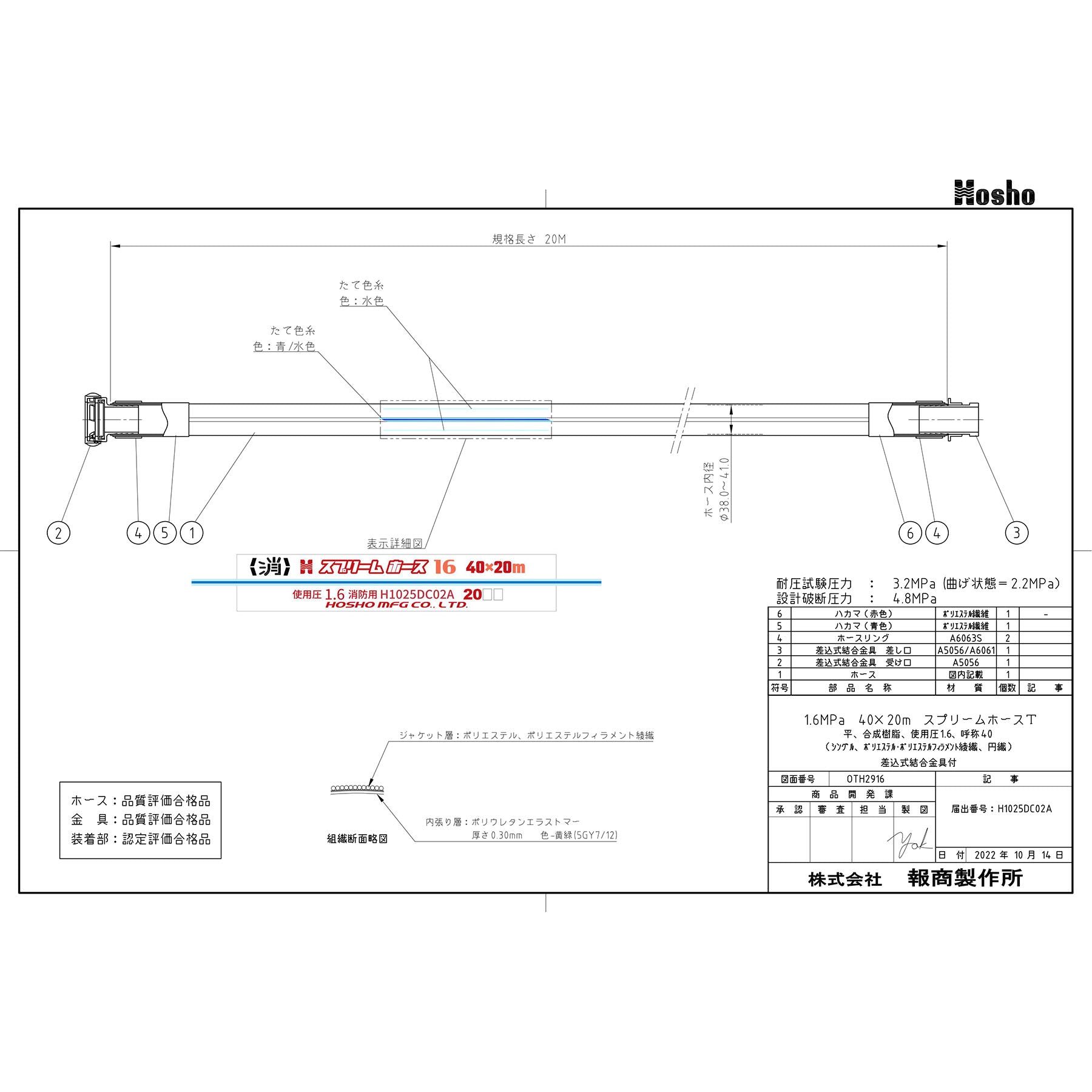 スプリームホース(消防消火用ホース)1.6MPa 40A×20m 差込式