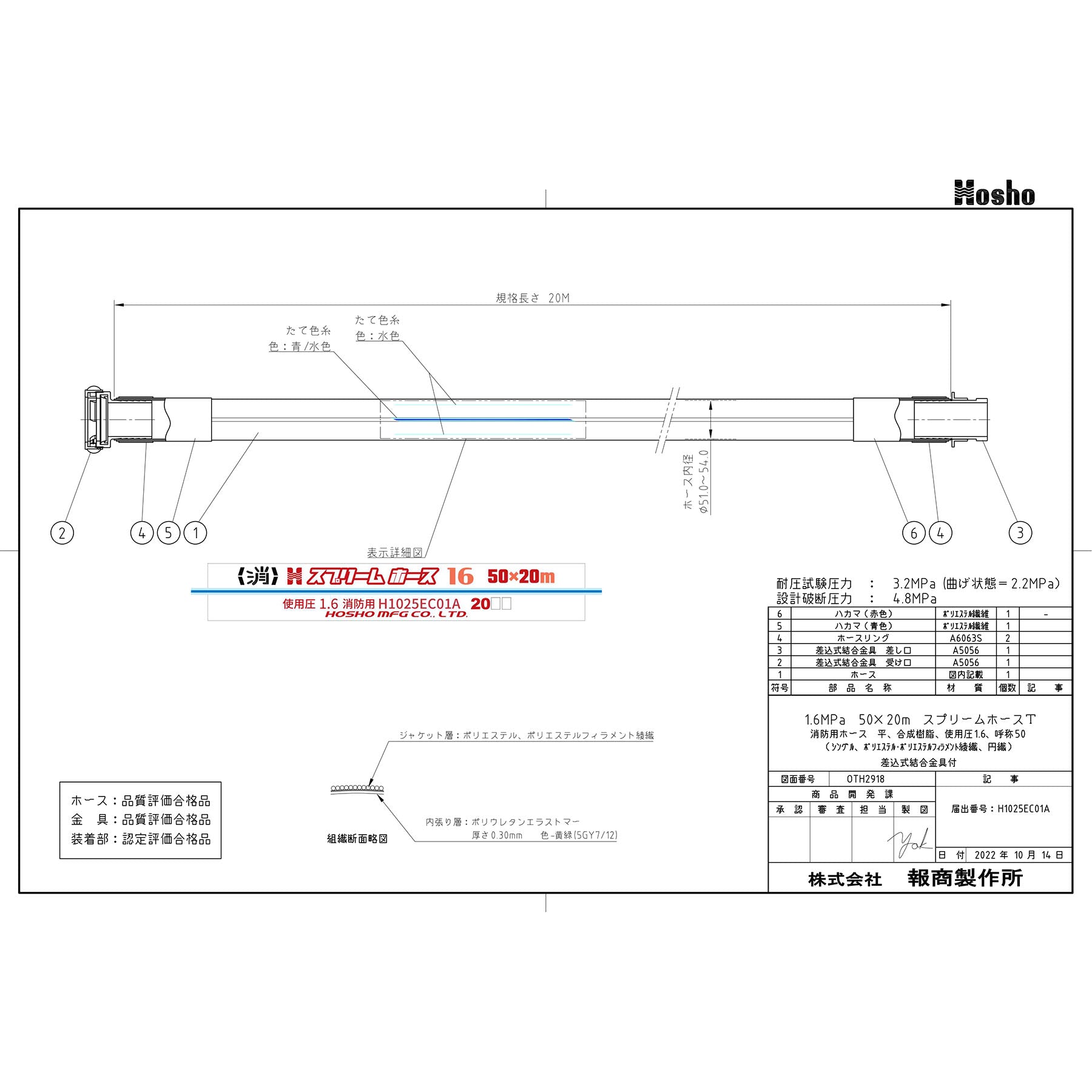 スプリームホース(消防消火用ホース)1.6MPa 50A×20m 差込式