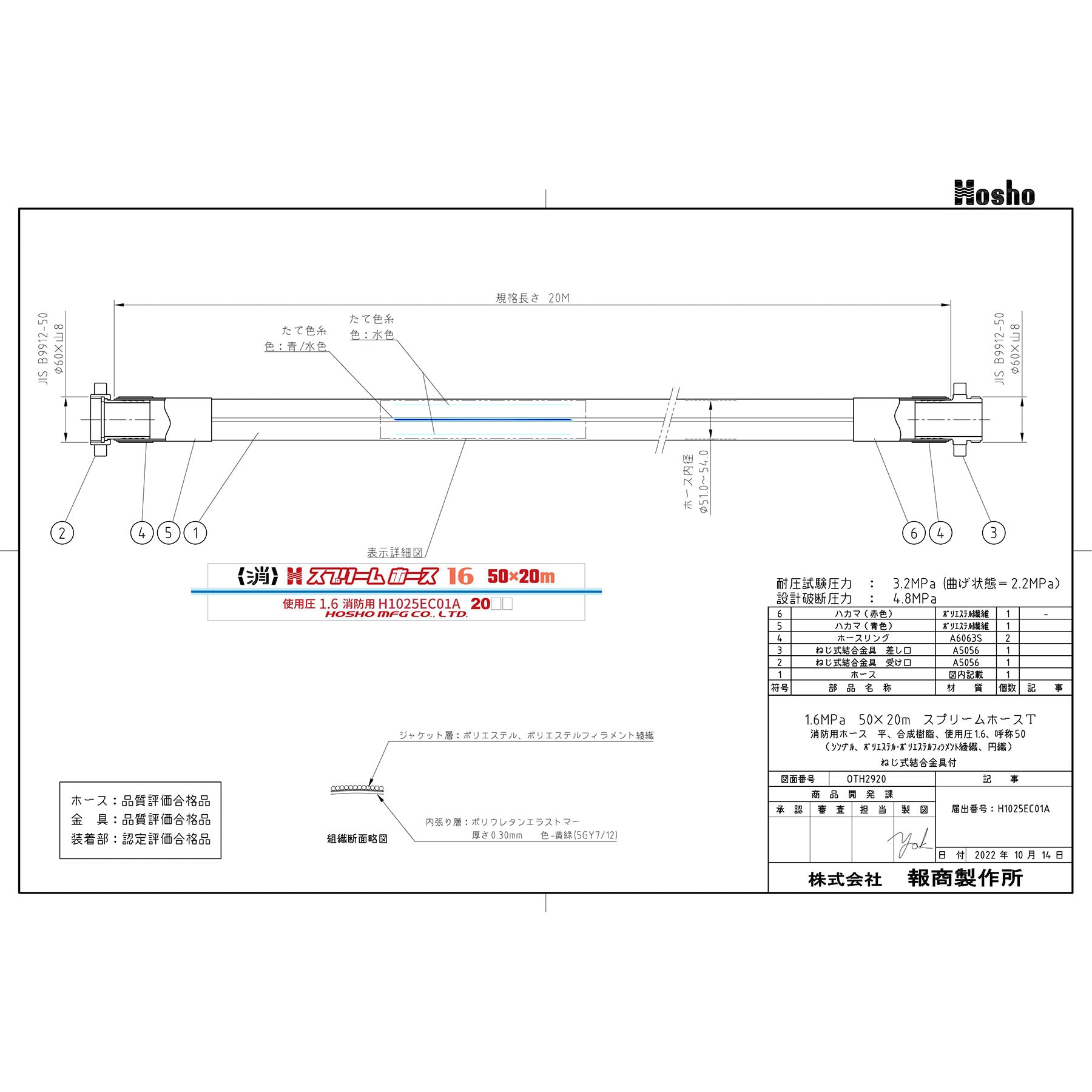 スプリームホース(消防消火用ホース)1.6MPa 50A×20m 消防ネジ式