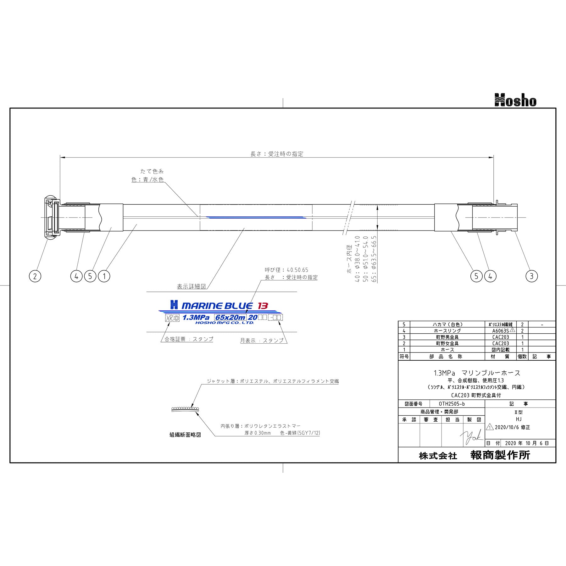 HKマリンブルーホース(船舶用消火ホース)1.3MPa 50A×25m 黄銅製町野式金具