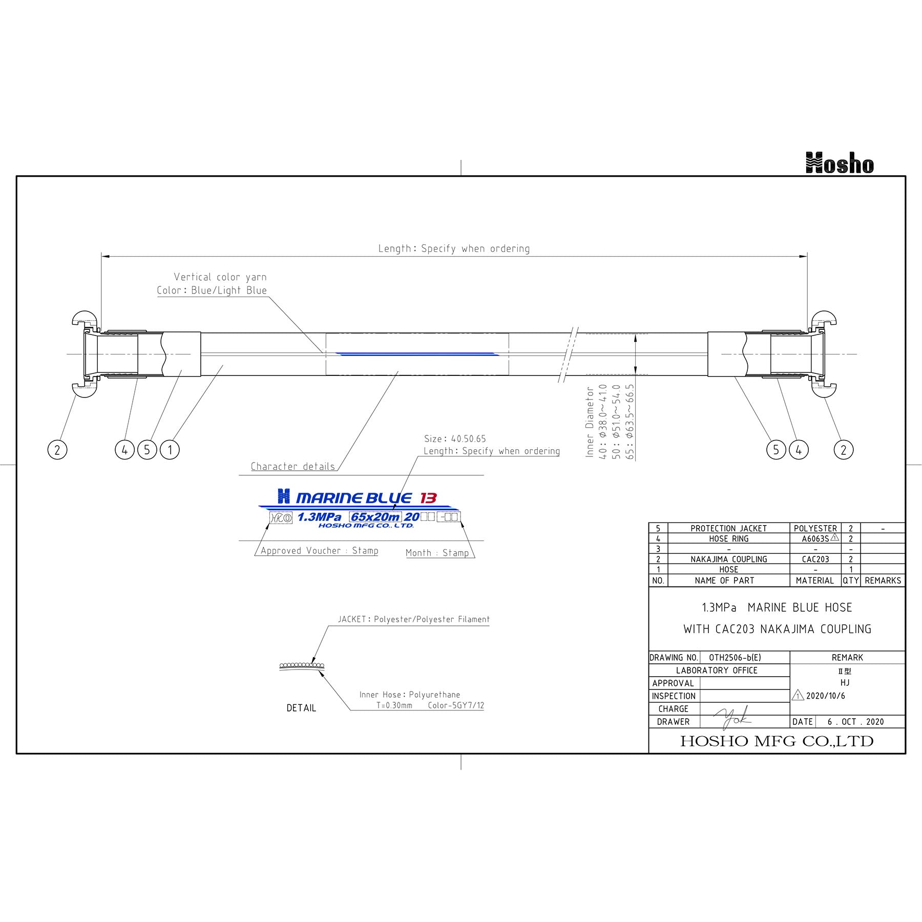 HKマリンブルーホース(船舶用消火ホース)1.3MPa 65A×18m 黄銅製中島式金具
