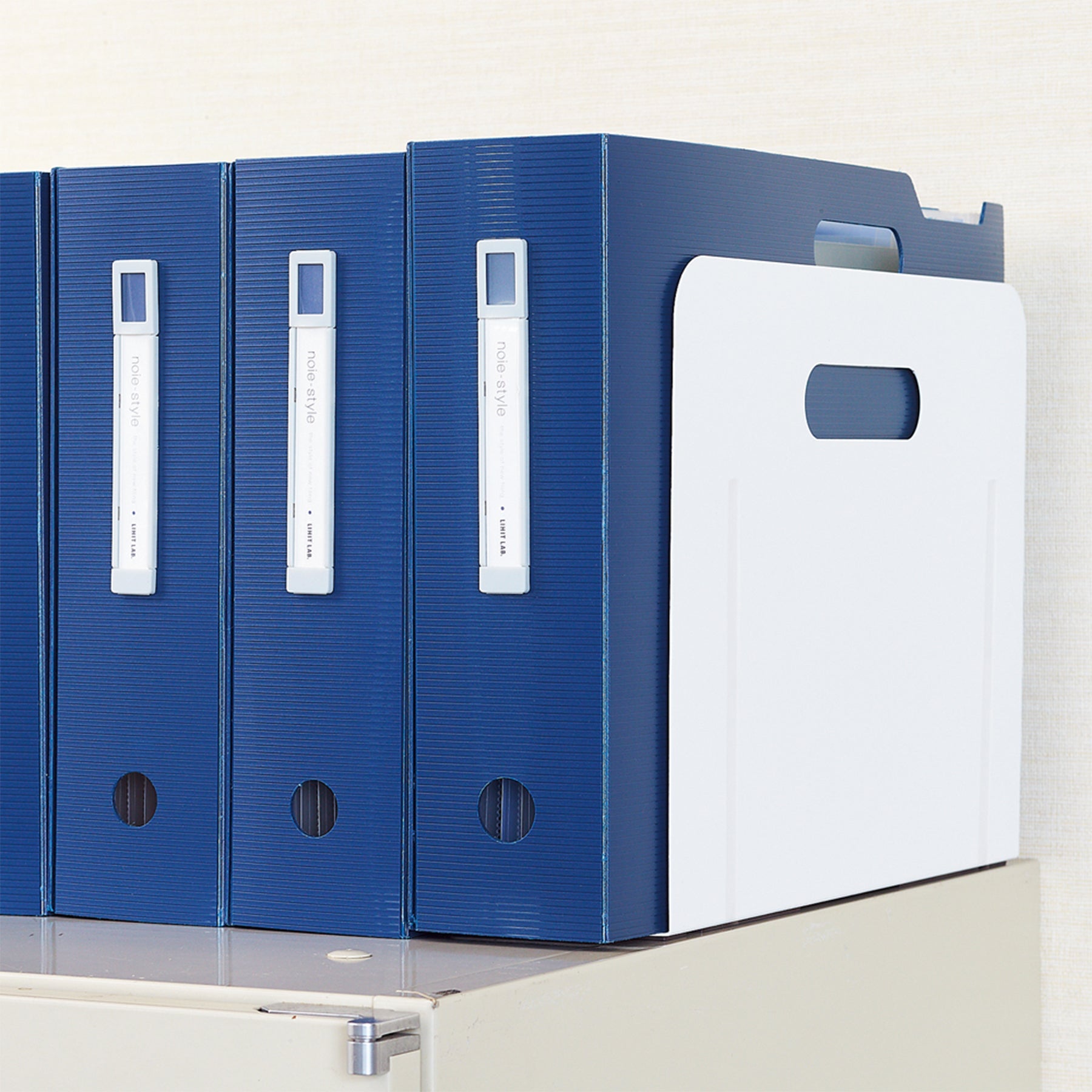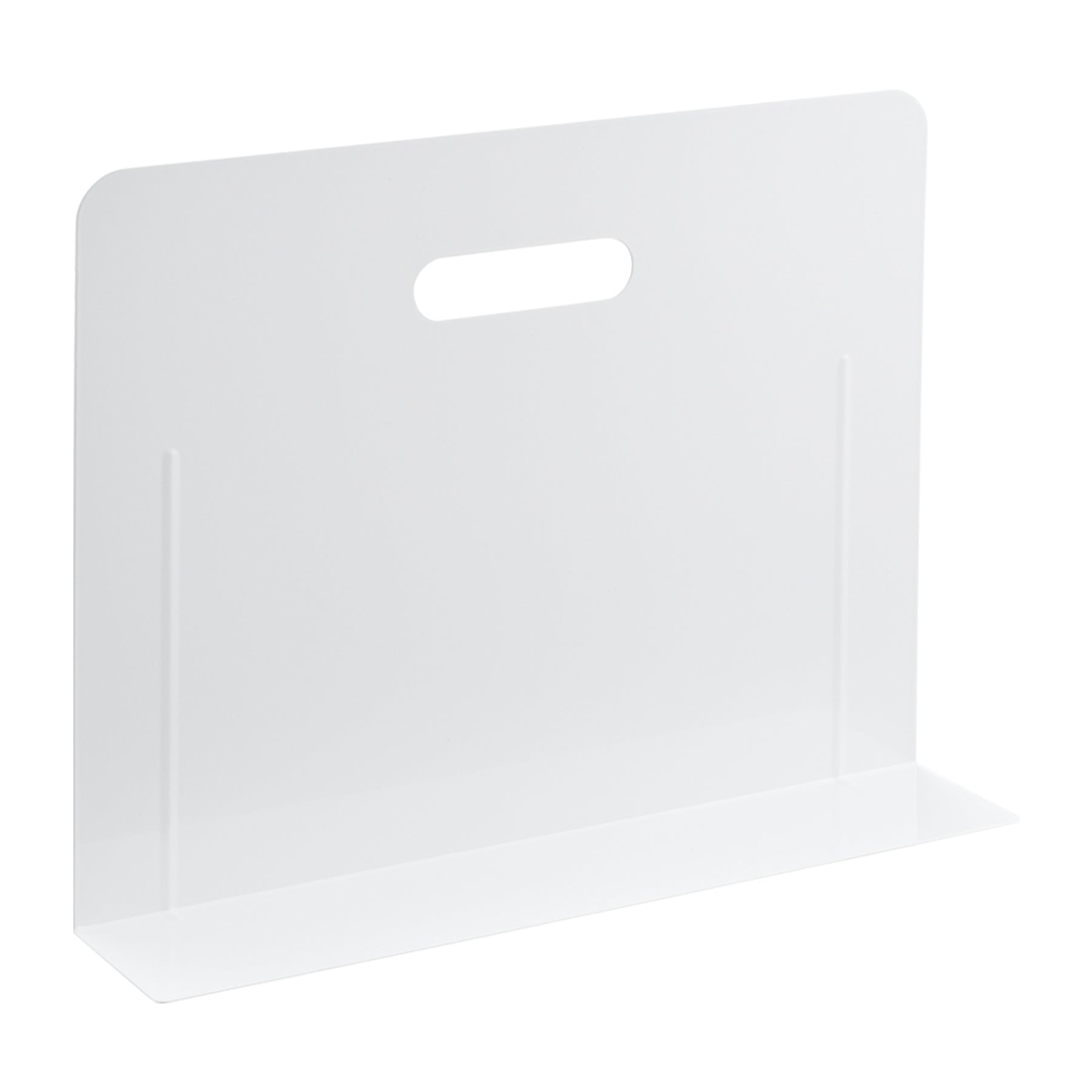 ●ブックエンド・スーパーワイドタイプ(マグネット付) ホワイトは、底部にマグネットシート付きで、キャビネットの奥行きに対応するスーパーワイドタイプのブックエンドです。