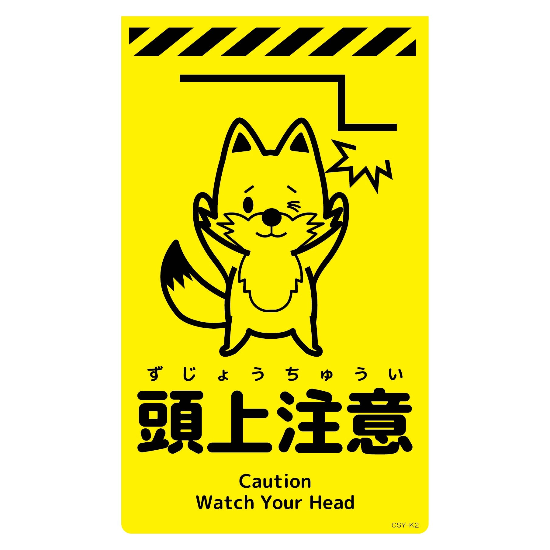 ニューコーンサイン蛍光イエロー キツネ 頭上注意 CSY-K2