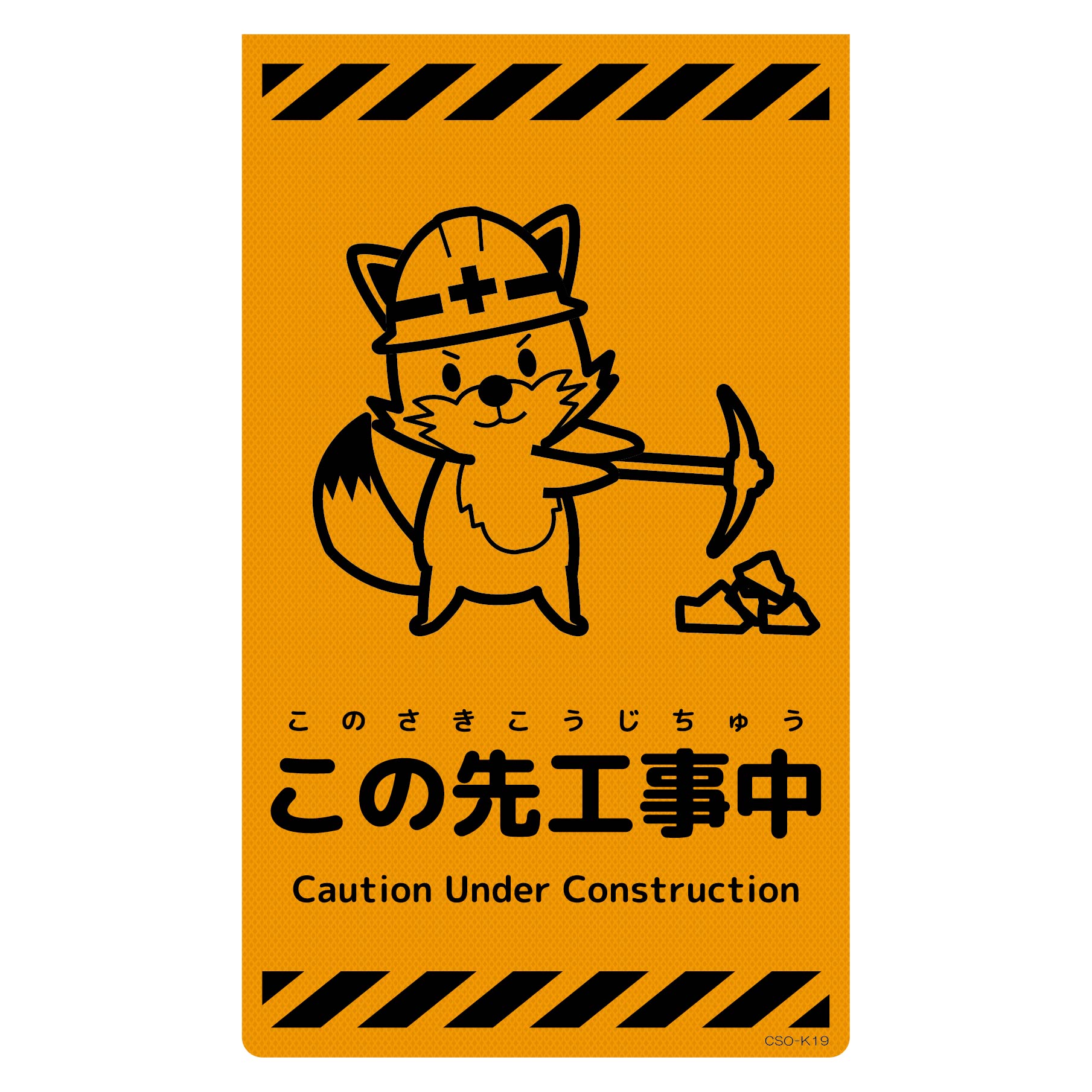 ニューコーンサイン蛍光オレンジ キツネ この先工事中 CSO-K19
