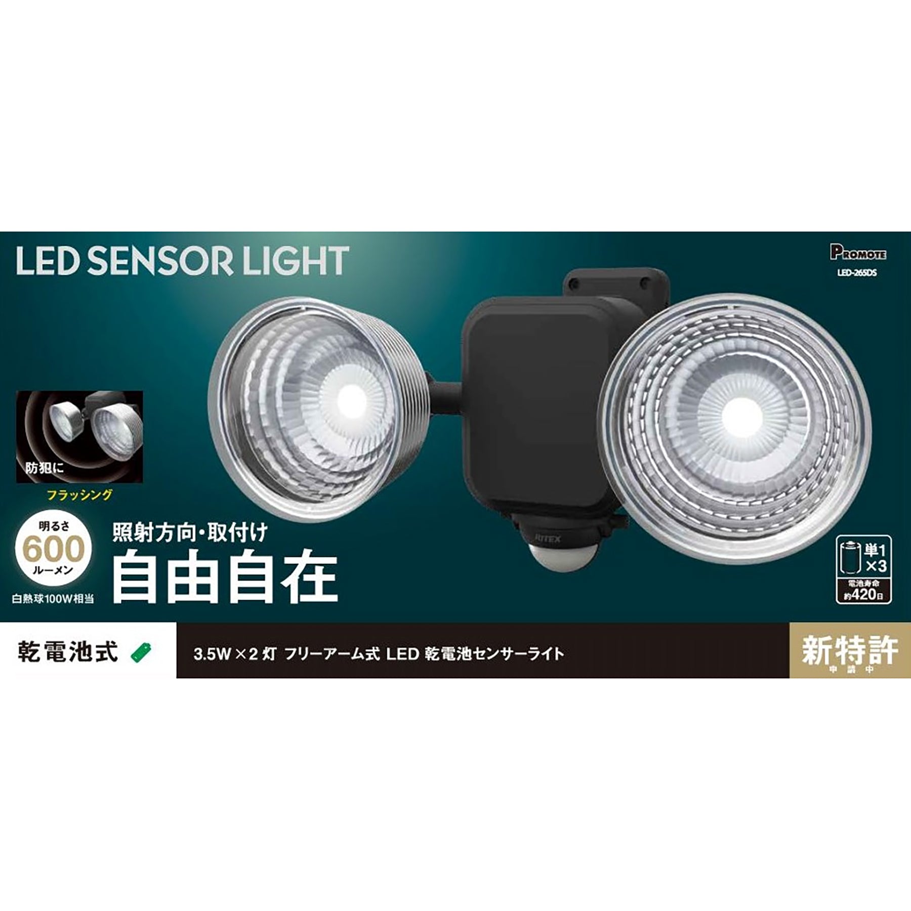 フリーアーム式LEDセンサーライト 「乾電池式」 防雨型