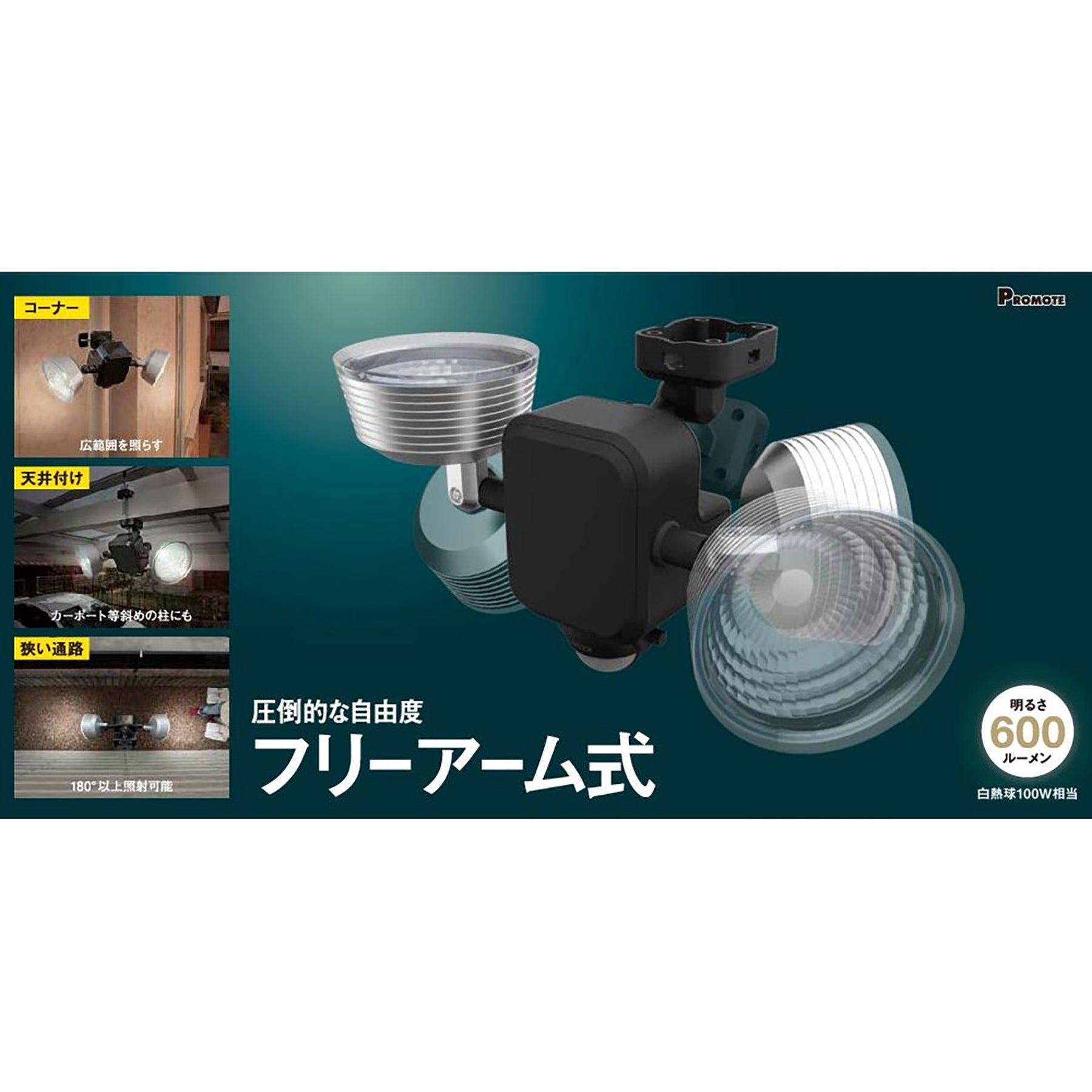 ●フリーアーム式LEDセンサーライト 防雨型は、新構造で照射方向・取り付けが自由自在のフリーアーム式のセンサーライトです。