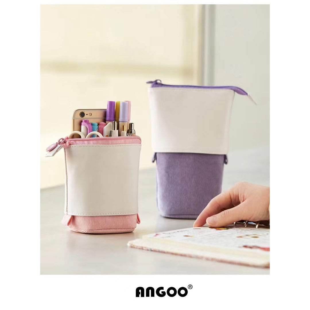 ●angooペンケースは、緑、黒、青、紫、ピンクの5色でスタンドアップ型ペンケースです。