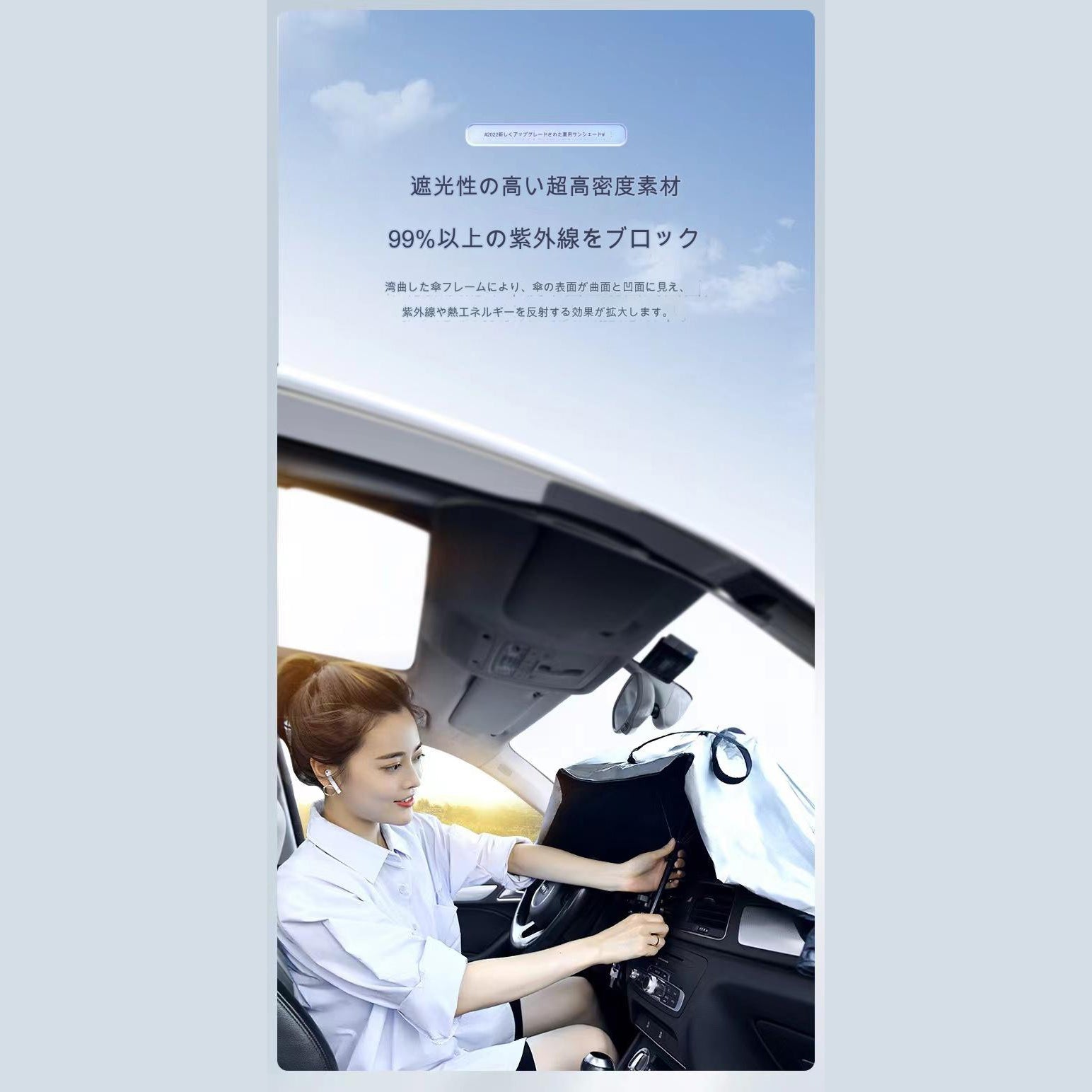 ●車用サンシェード傘式は折り畳み式のため、使用時には簡単に広げて設置でき、使用後はコンパクトに畳んで収納可能です。
