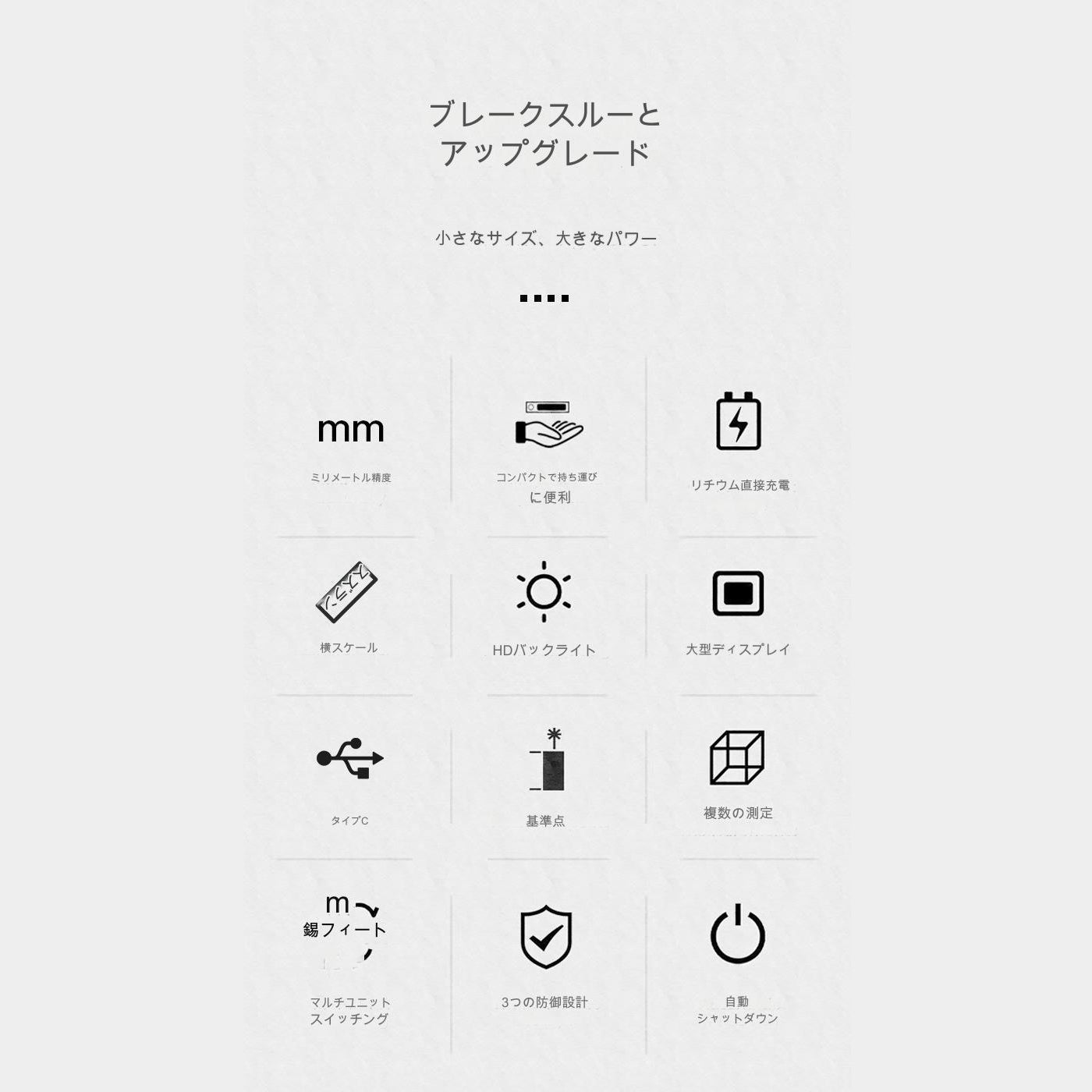 | 建設現場やインテリアデザイン、不動産測量など、さまざまな場面で活躍します。 |