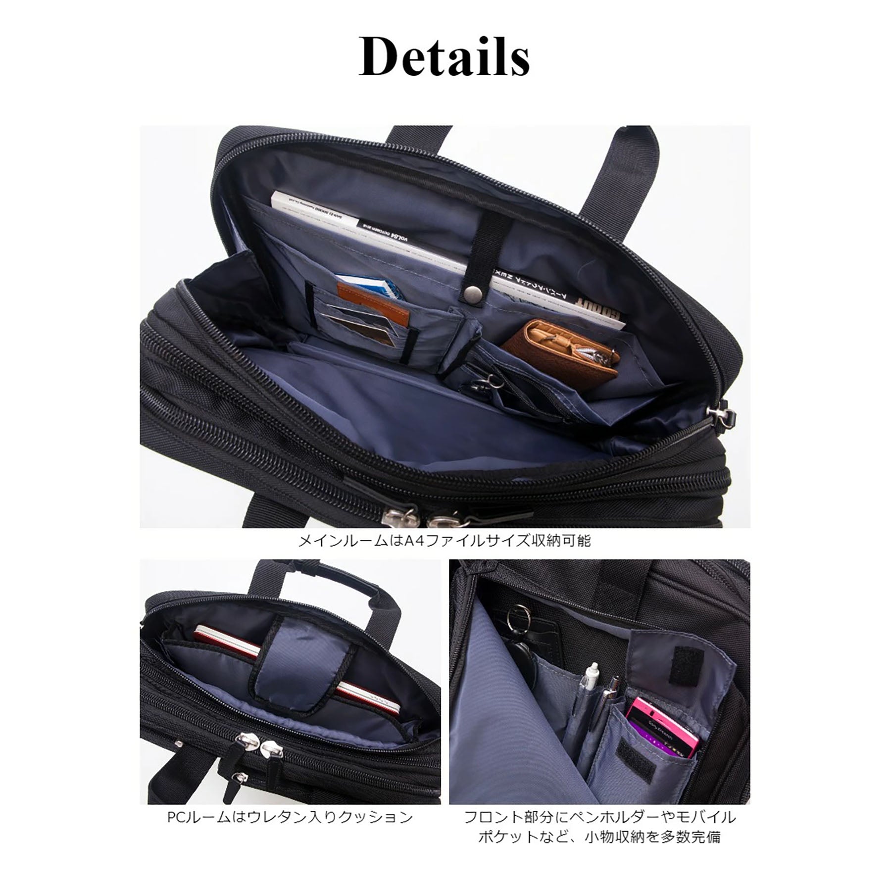 | 外側:ファスナーポケット×4 内側:オープンポケット×6、PCポケット×1、ファスナーポケット×1、かぶせポケット×1、カード差し×3、ペン差し×2 |