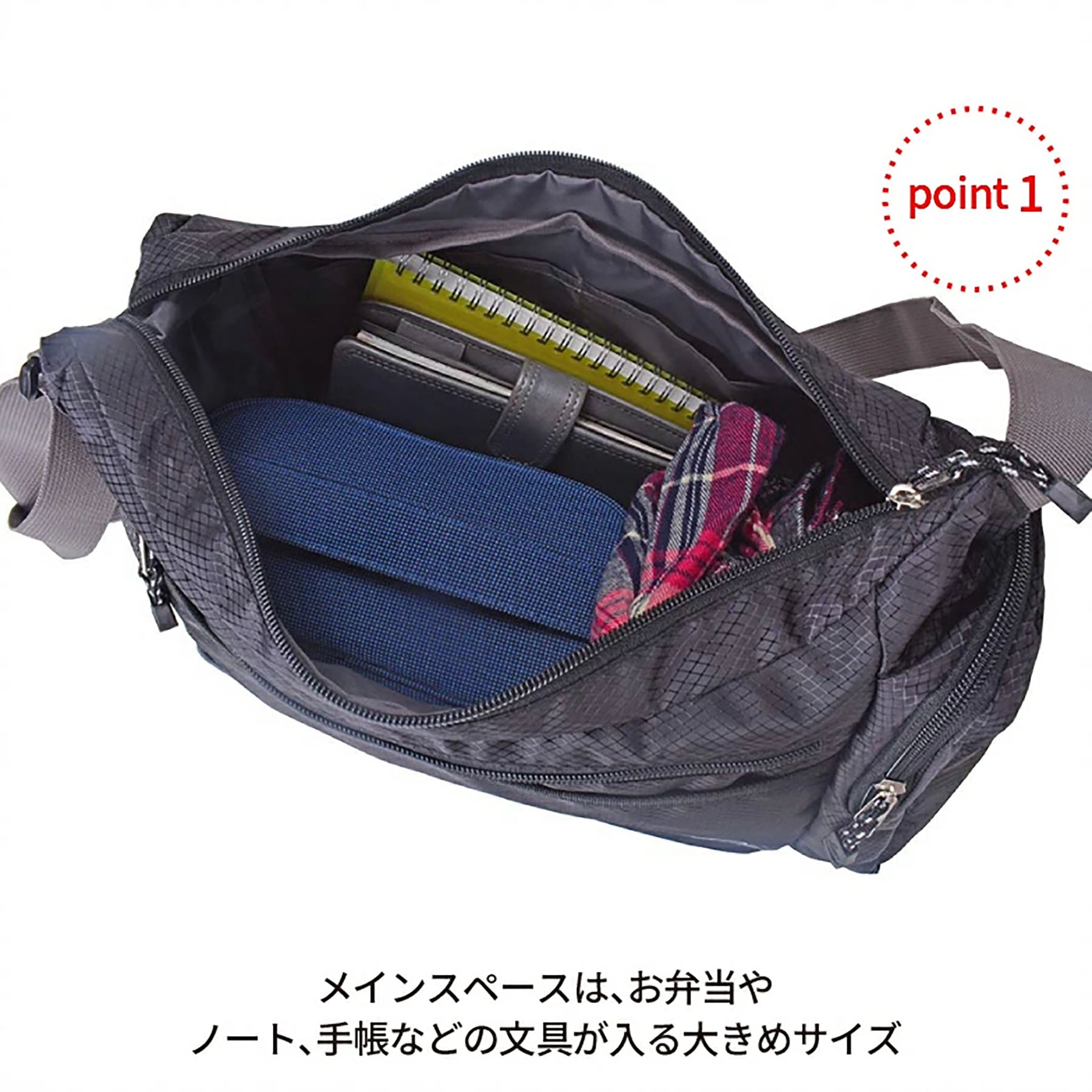 ●モバイルポケットや小物収納ポケットなど便利機能を多数完備。