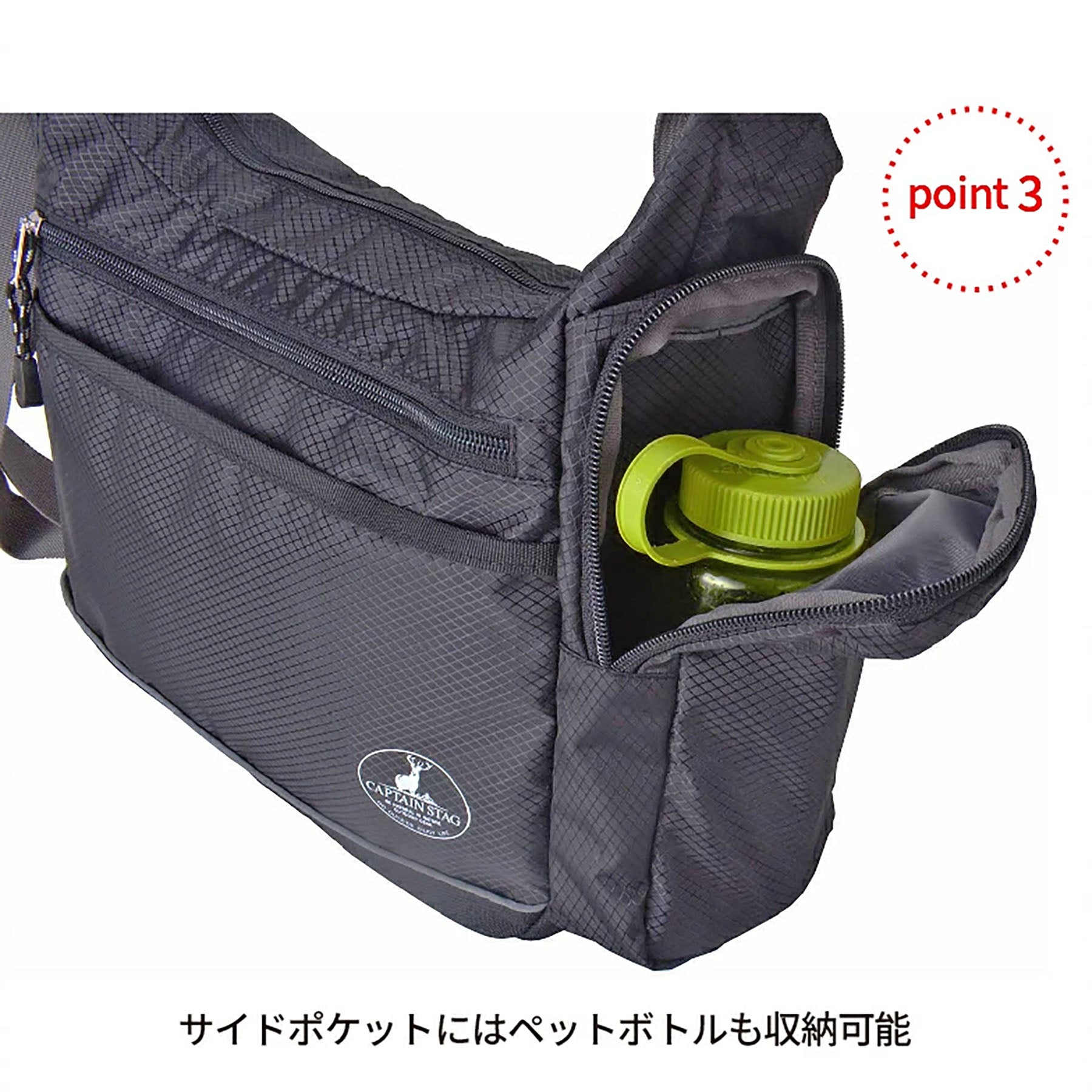 ●サイドにはペットボトルも収納可能なポケットを搭載しております。