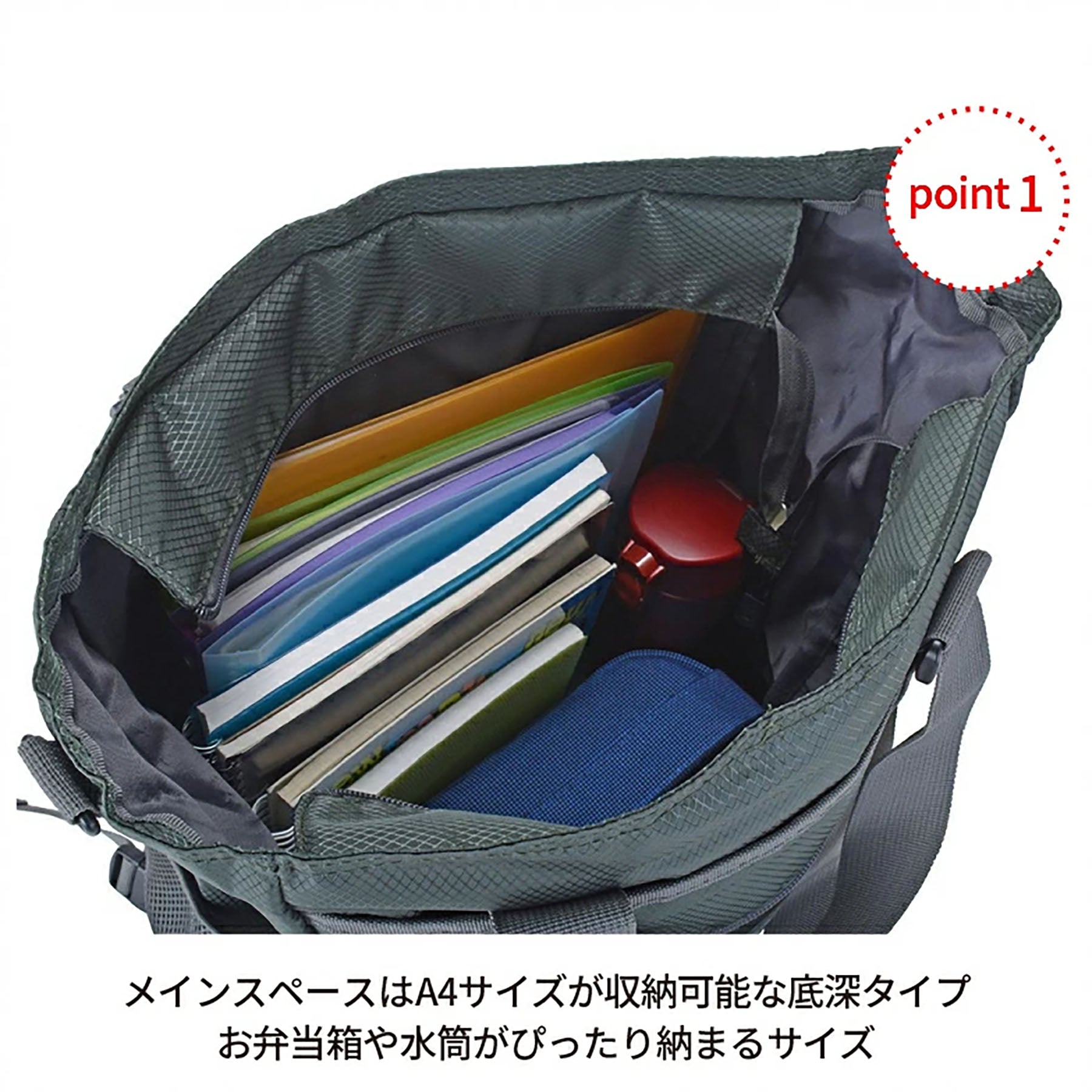 ●両サイドのメッシュポケットは500mlのペットボトルや折り畳み傘を入れても便利です。