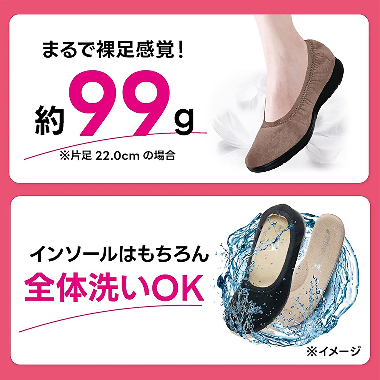 ●シリーズ累計販売数54万足を突破した国産シューズブランド【ラックラック】の『空飛ぶ洗えるパンプス』シリーズ製品です。