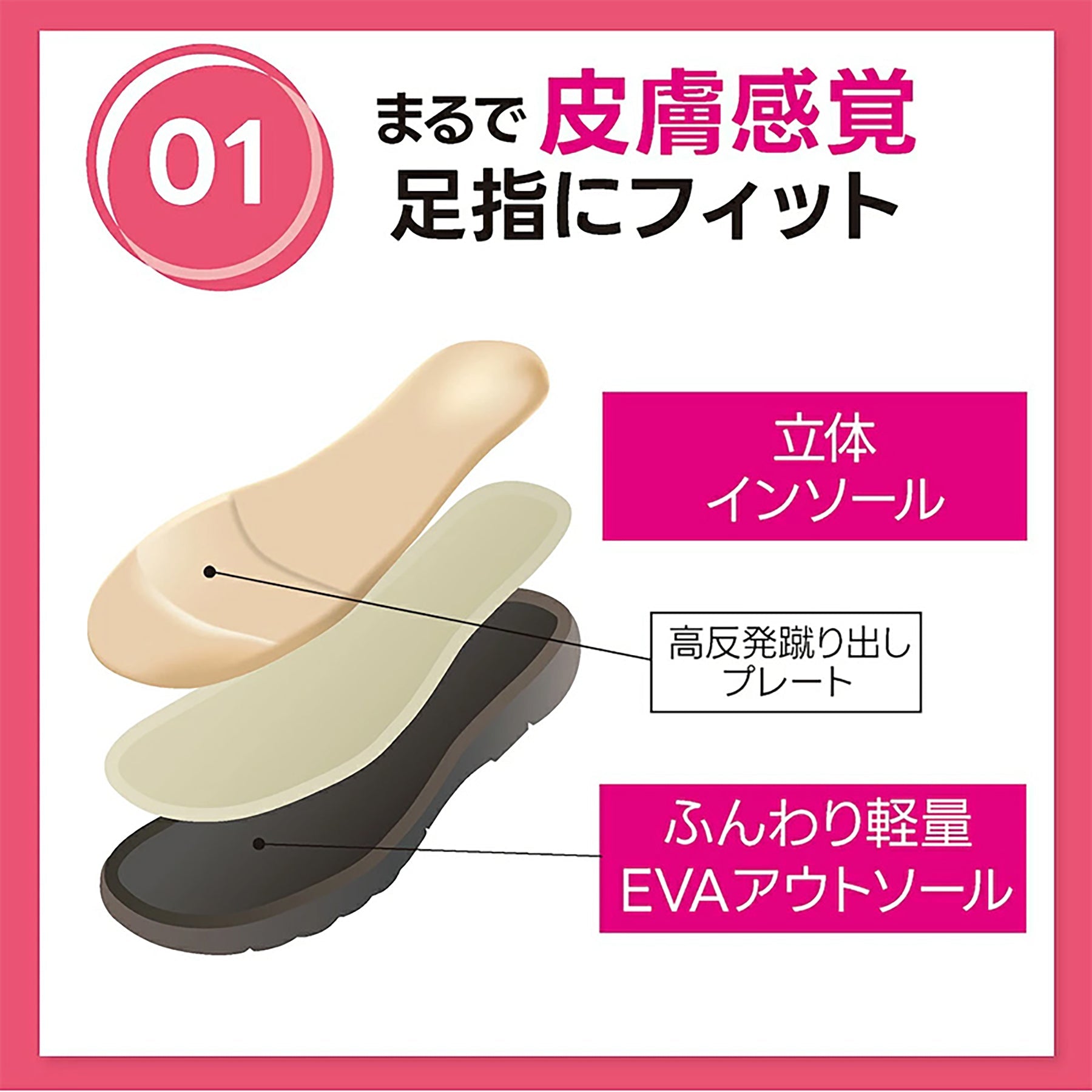 ●足指にフィットするもっちりインソールが採用されており、見た目以上に軽い履き心地で快適に歩けます。