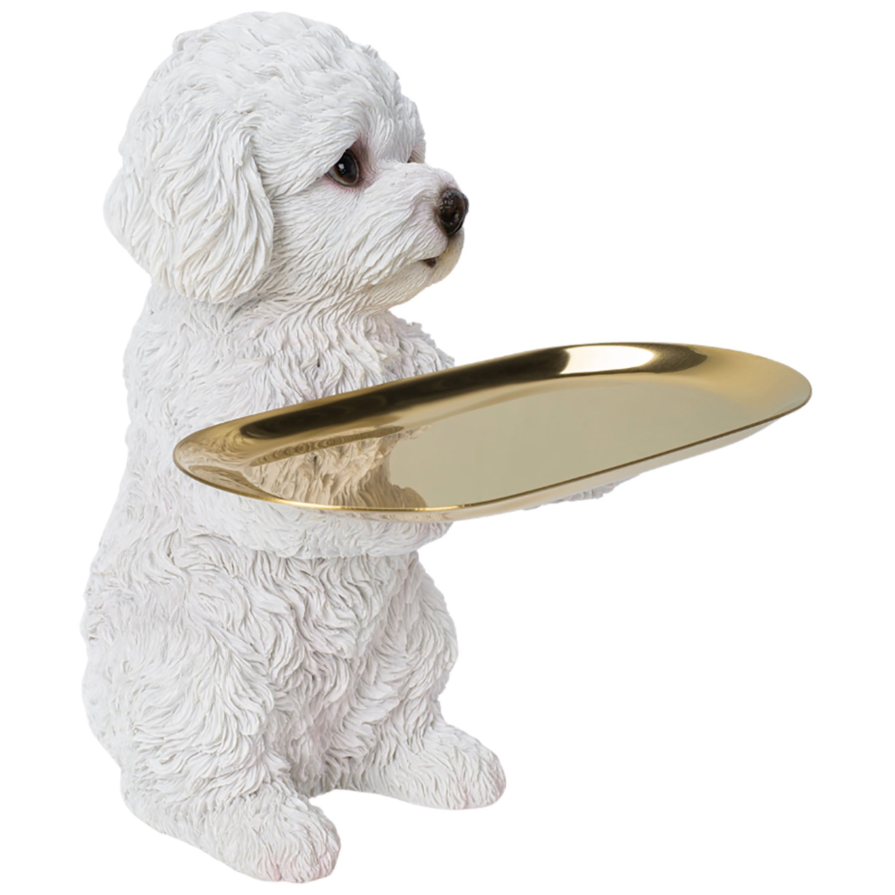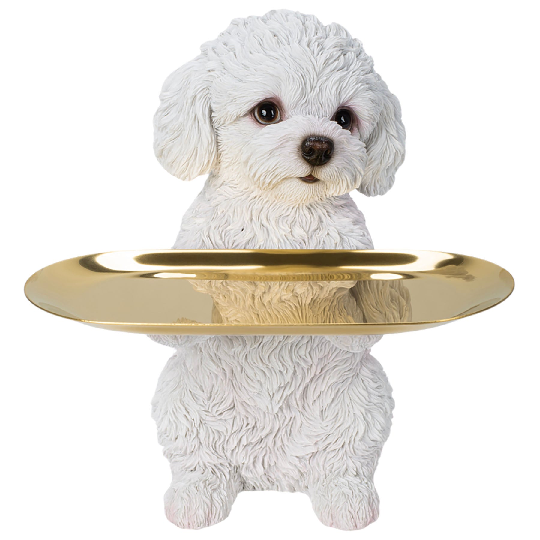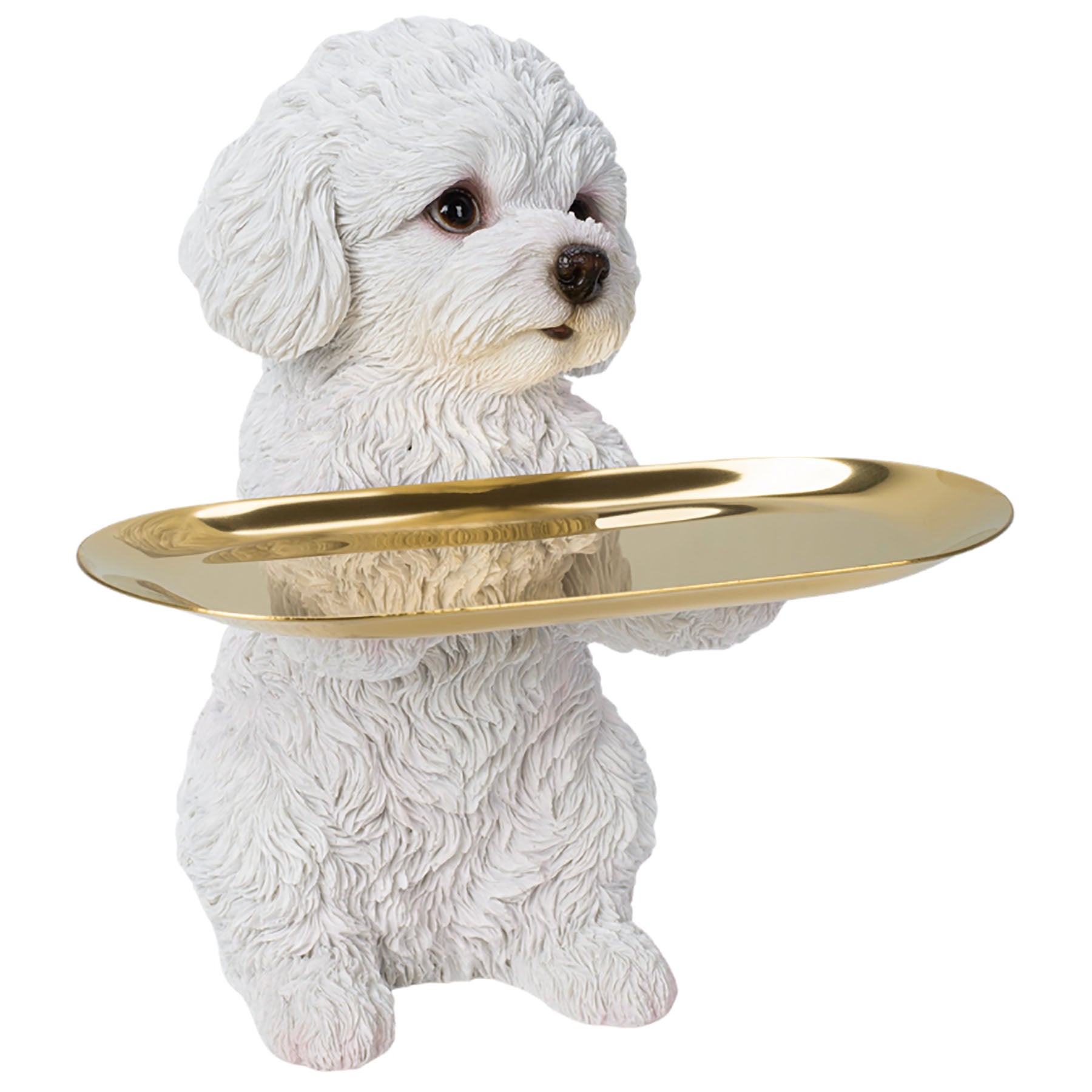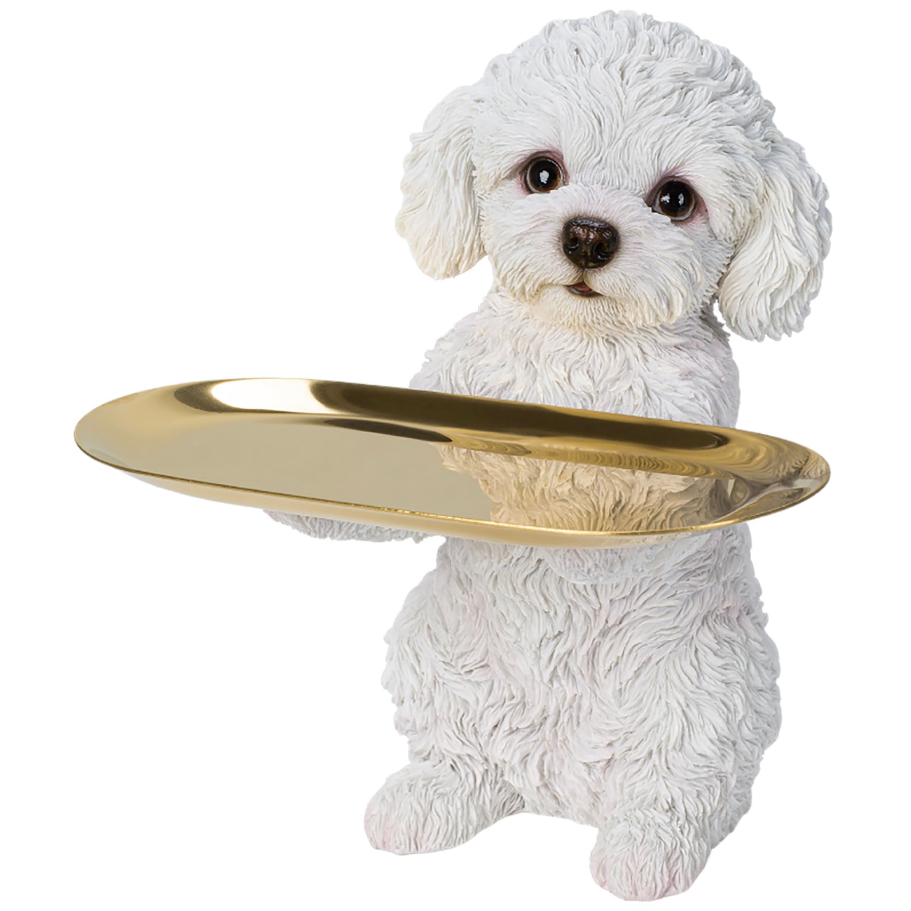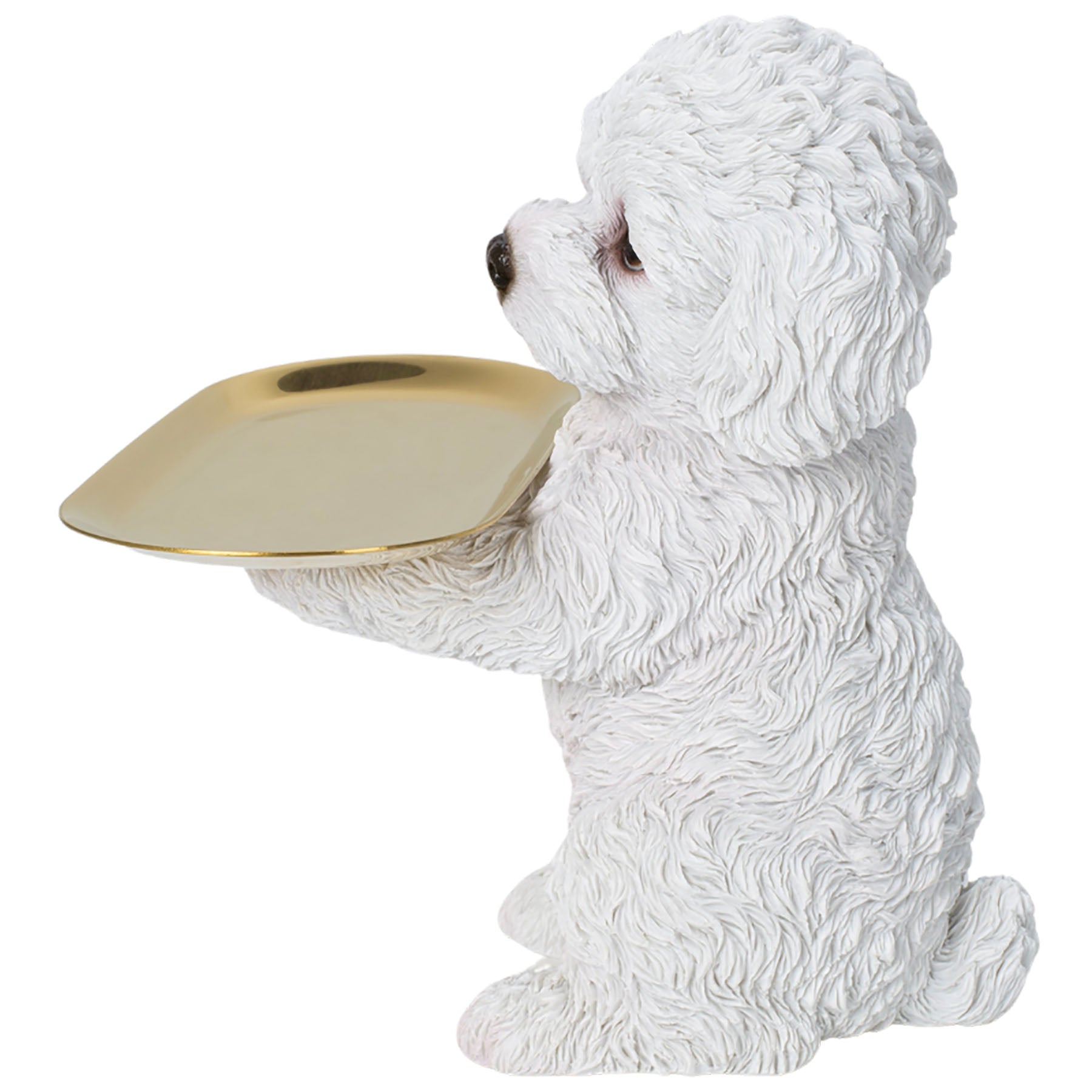 白いトイプードルの小物置き(マグネットで取り外し可能皿)