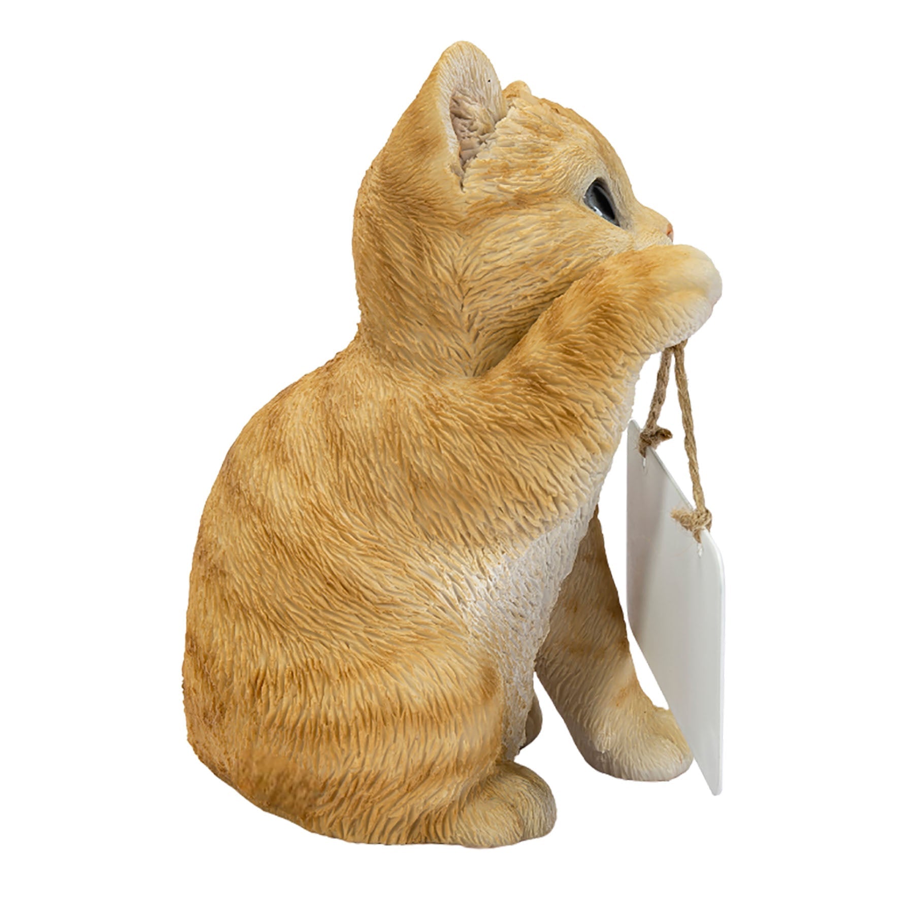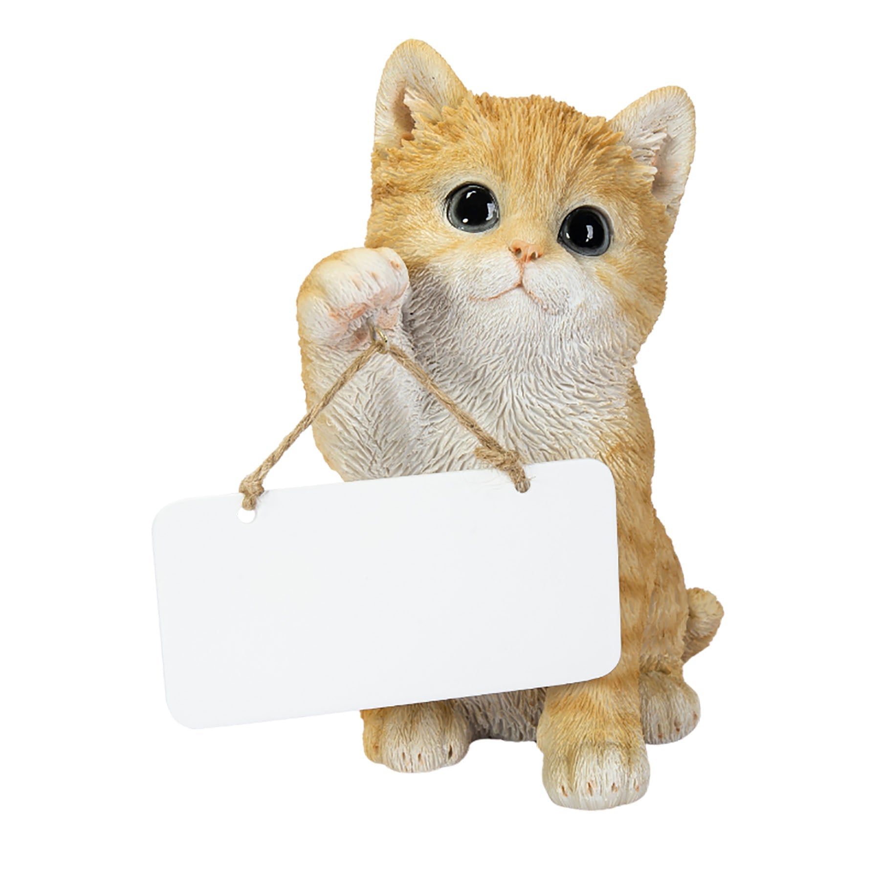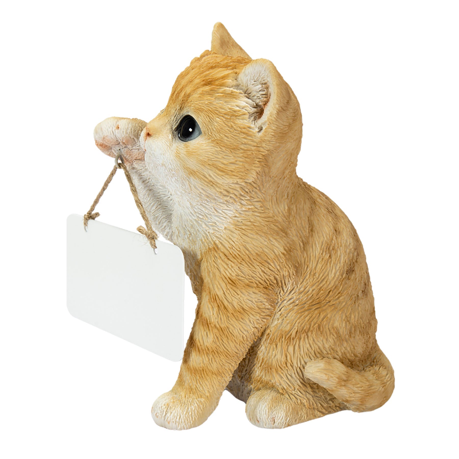 ●右手でボードを持つ茶トラ白猫は、手作り塗装なのに本物にそっくりな可愛らしいオブジェです。