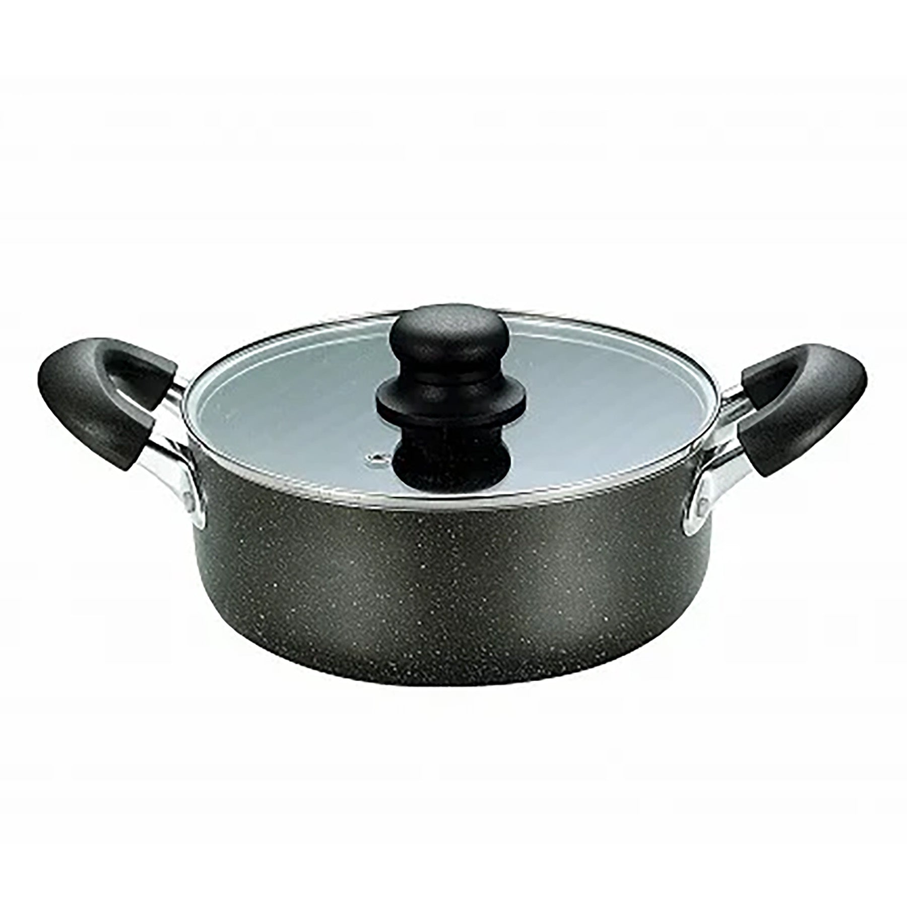 本体:アルミニウム合金(底厚2.2mm) はり底:ステンレス鋼 フタ:強化ガラス ハンドル・ツマミ:フェノール樹脂(耐熱温度140℃) |