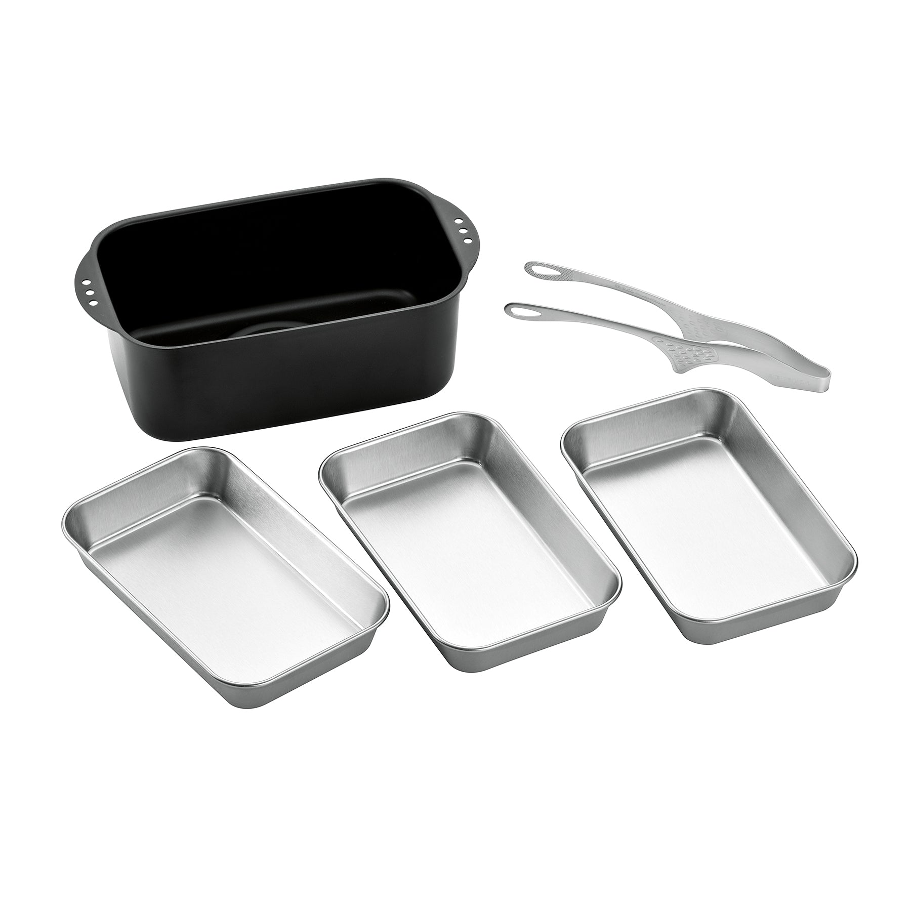 本体:鉄(表面ふっ素樹脂塗膜加工)底の厚さ1.2mm バット/18-8ステンレス トング/18-0ステンレス |