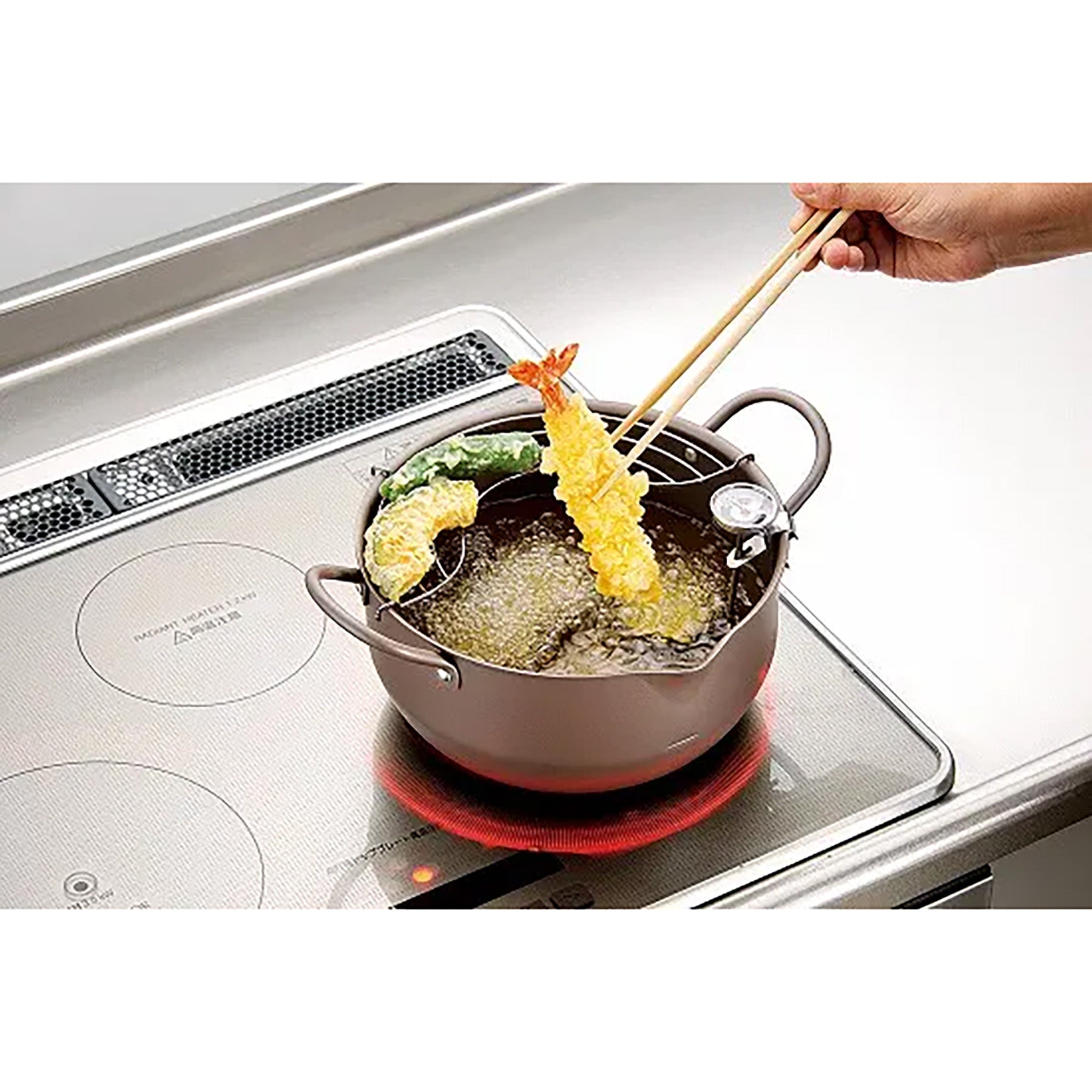 ●極み揚 温度計付深型揚げもの鍋は、調理に便利な温度計・油切り網付きの揚げ物鍋です。