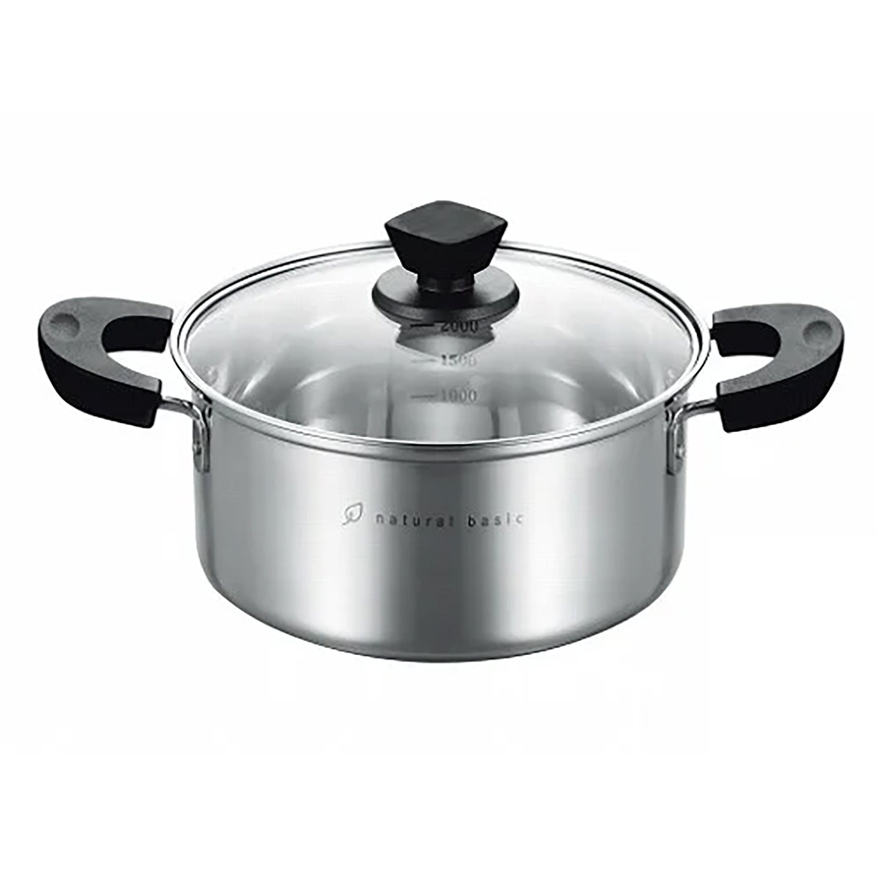 ●ナチュラルベーシック 両手鍋は、便利な目盛り(1000/1500/2000ml)付きの両手鍋です。