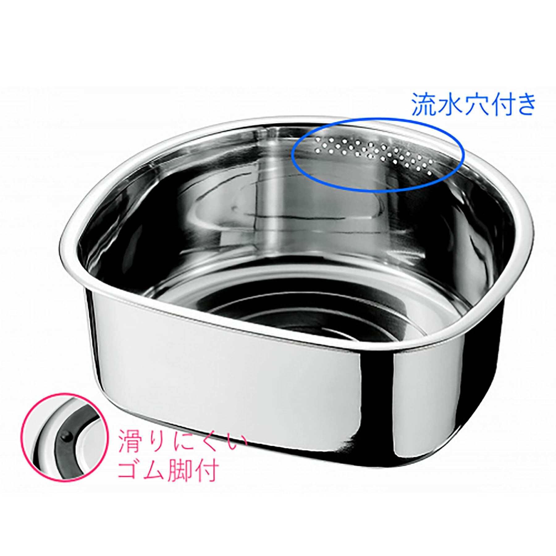 ●ステンレス製でさびにくく、滑りにくいゴム足付きでシンクを傷つけにくい仕様です。