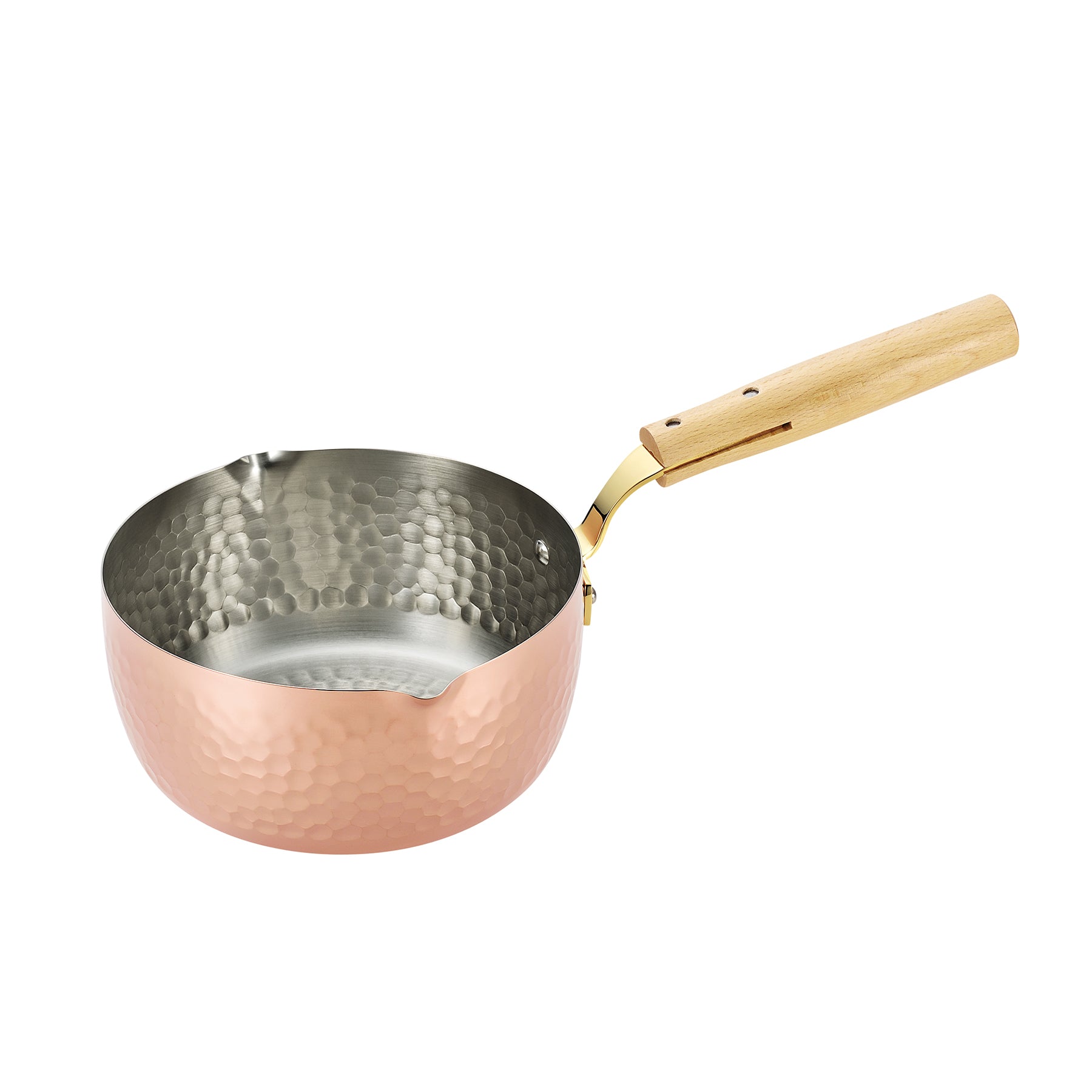本体:銅(内面メッキ) ハンドル:天然木・真鍮