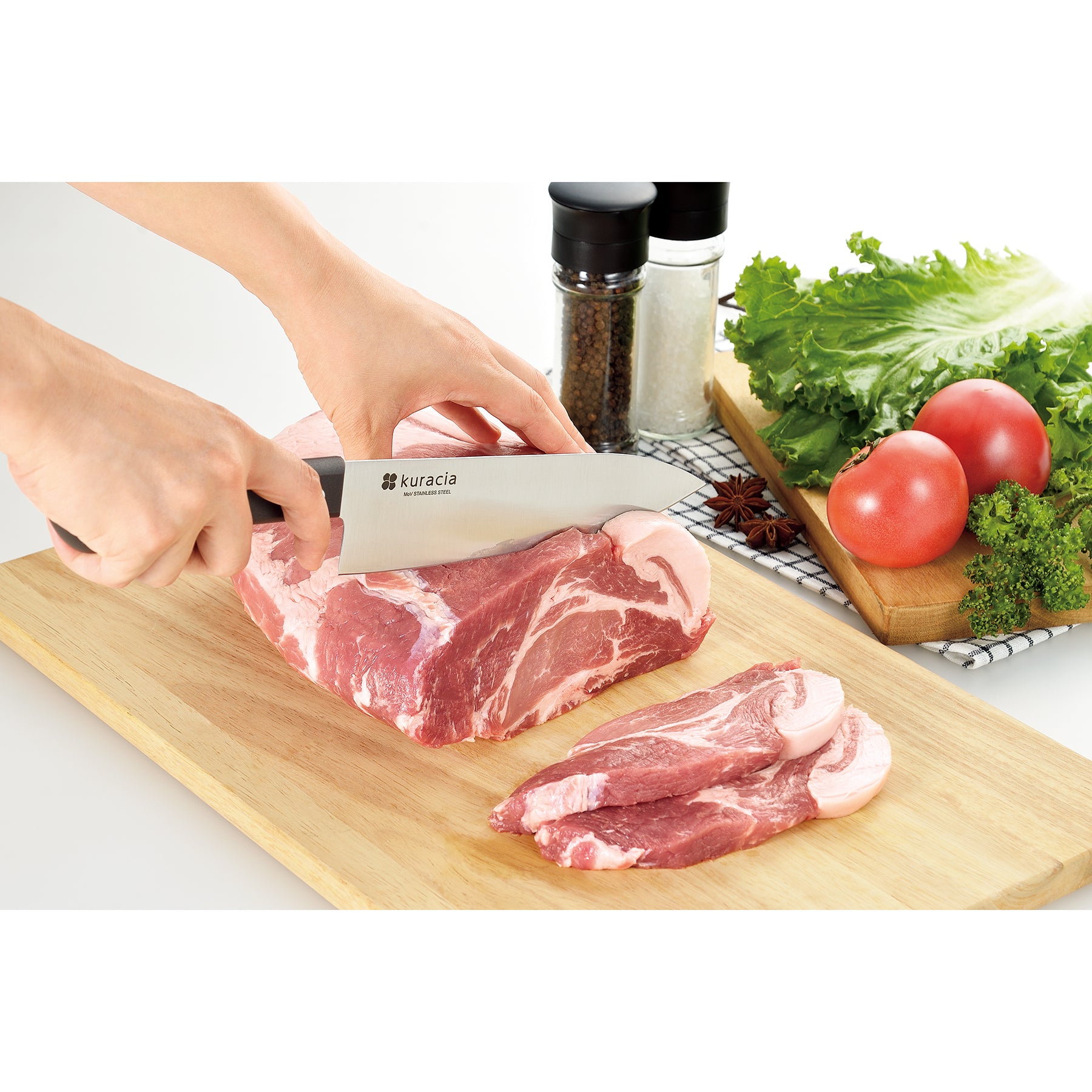 ●クラシア 牛刀は、サビに強く切れ味の持続性に優れたモリブデンバナジウム鋼を使用している包丁です。