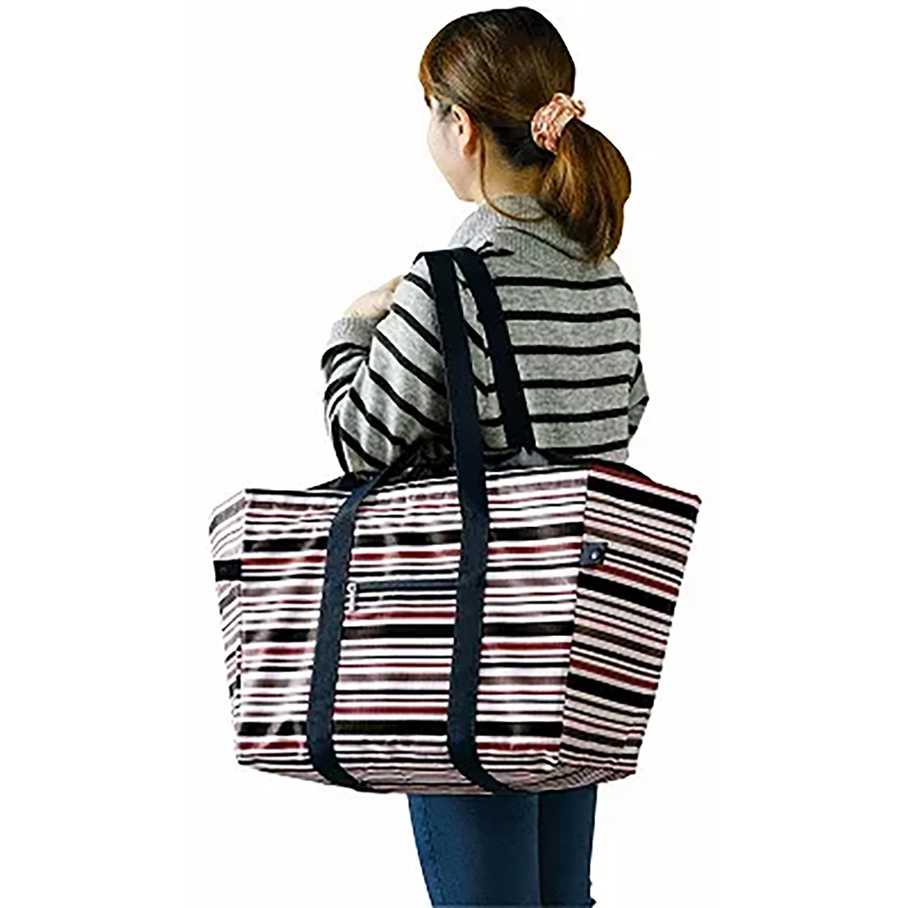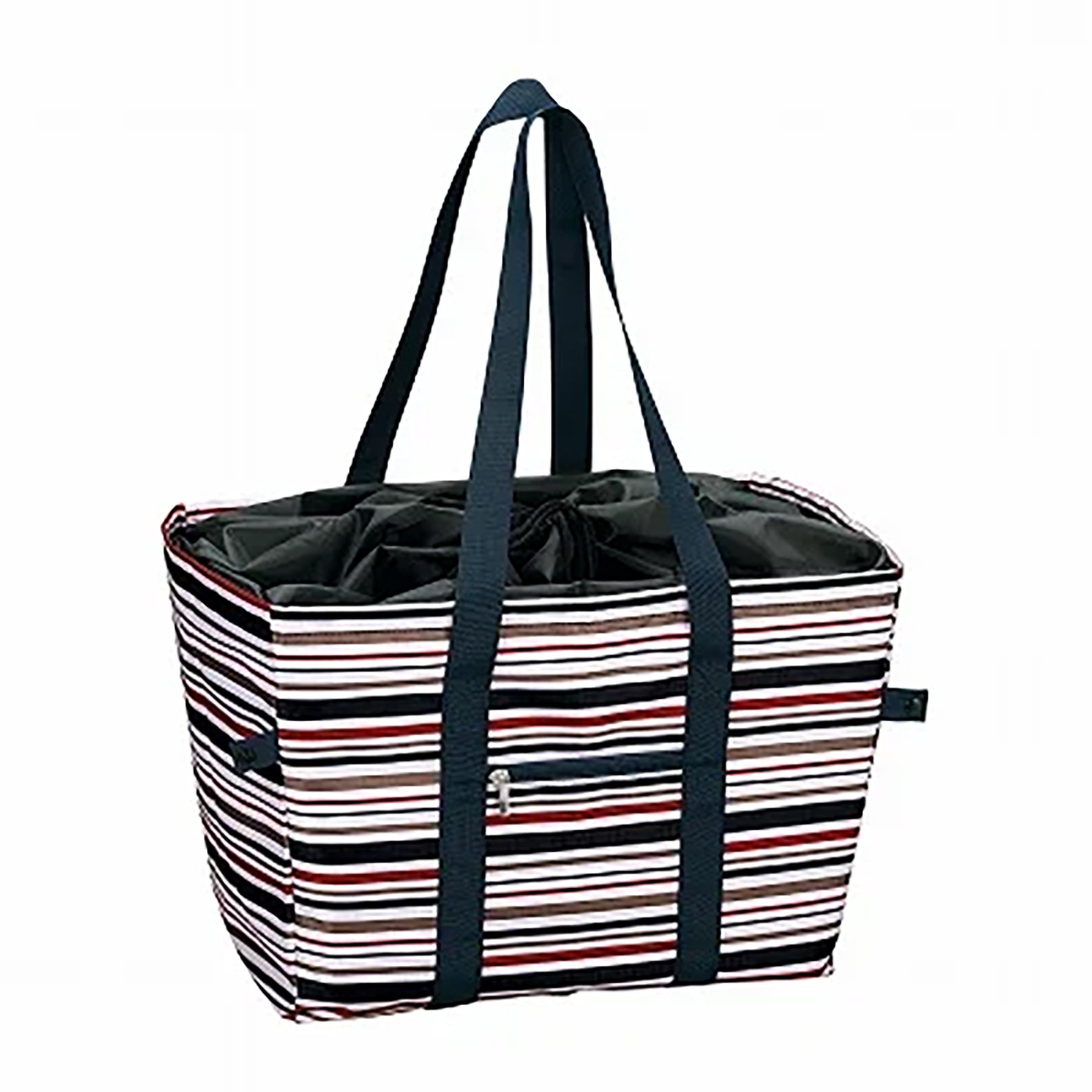たくさん入る肩かけできる保冷買い物かごバッグ ボーダー