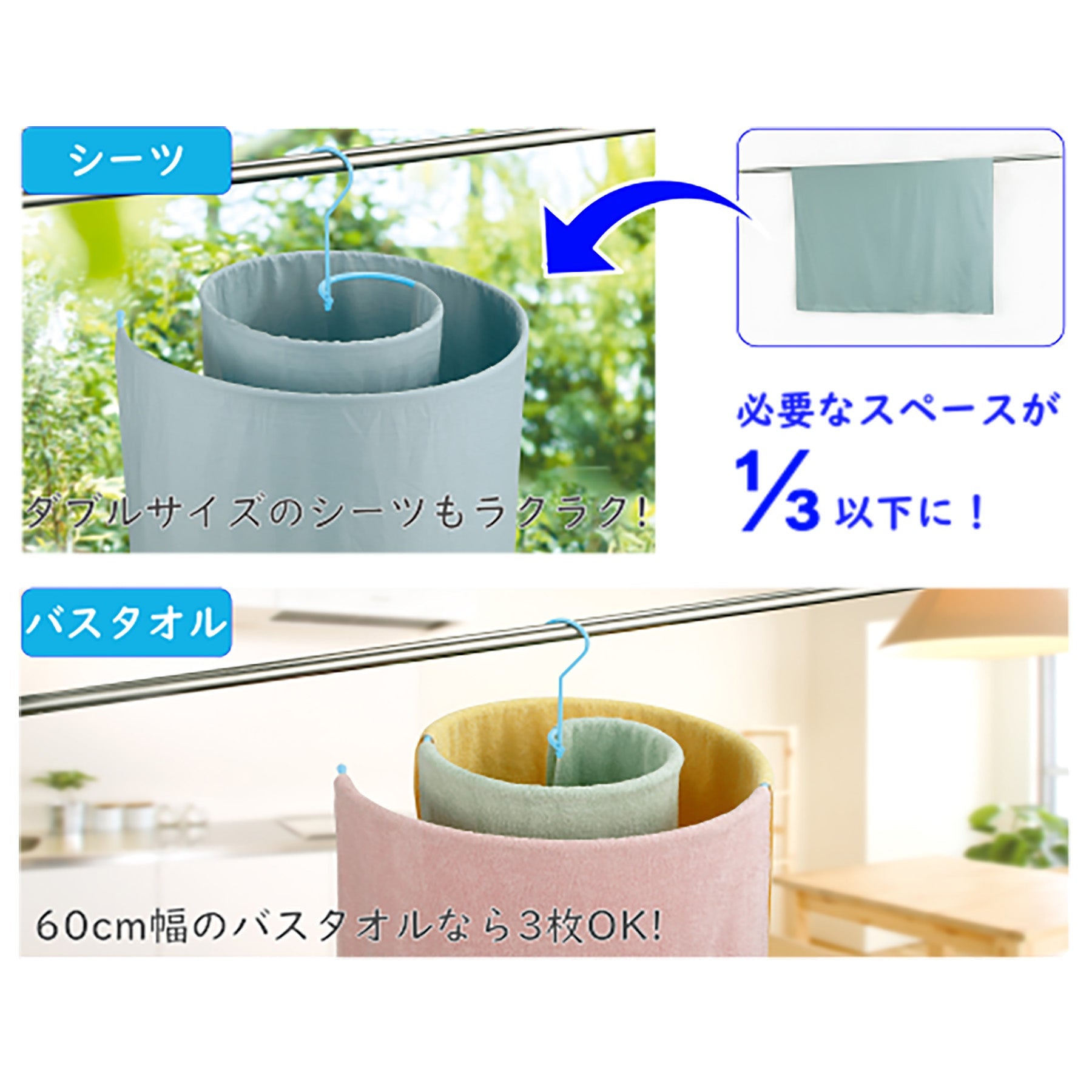 ●くるくるハンガーは、狭い場所でもシーツやバスタオルが干せる便利なハンガーです。