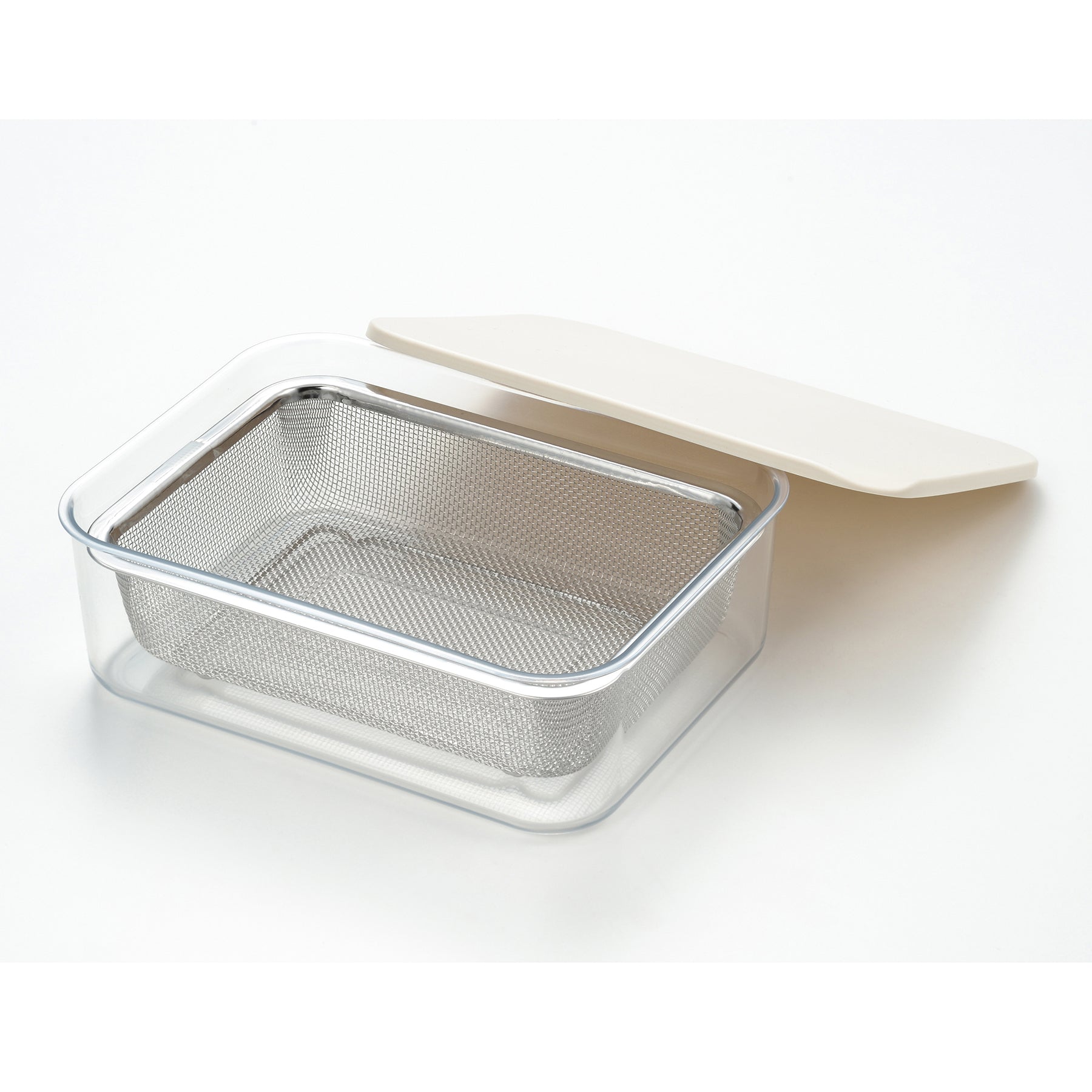 本体:ポリメチルペンテン(耐熱温度200℃、耐冷温度-20℃) 蓋:ポリプロピレン(耐熱温度140℃、耐冷温度-20℃) ザル:18-8ステンレス |