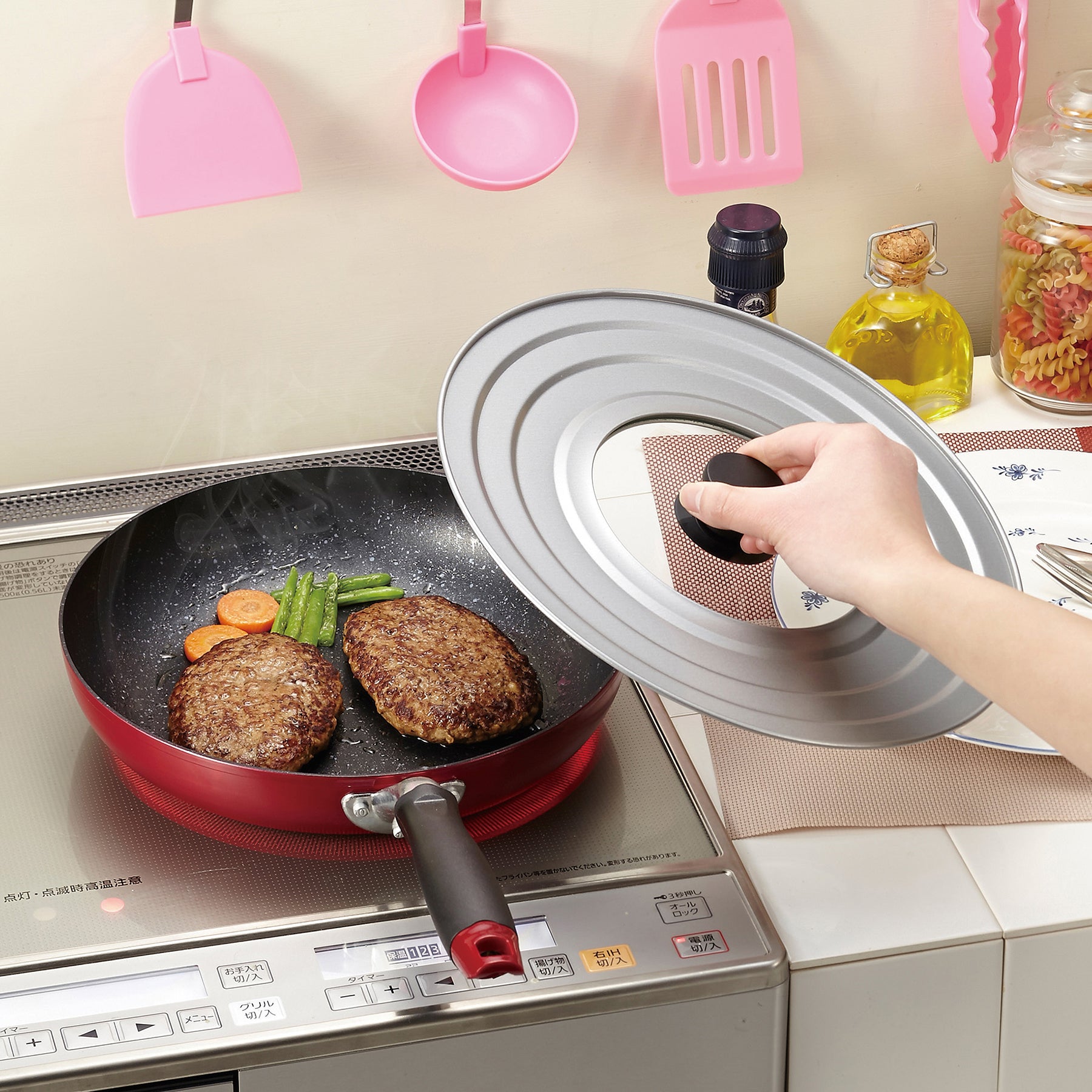 ●フッ素ガラス窓付フライパンカバーは、ガラス窓付きで調理中の食材も見やすいフライパンカバーです。