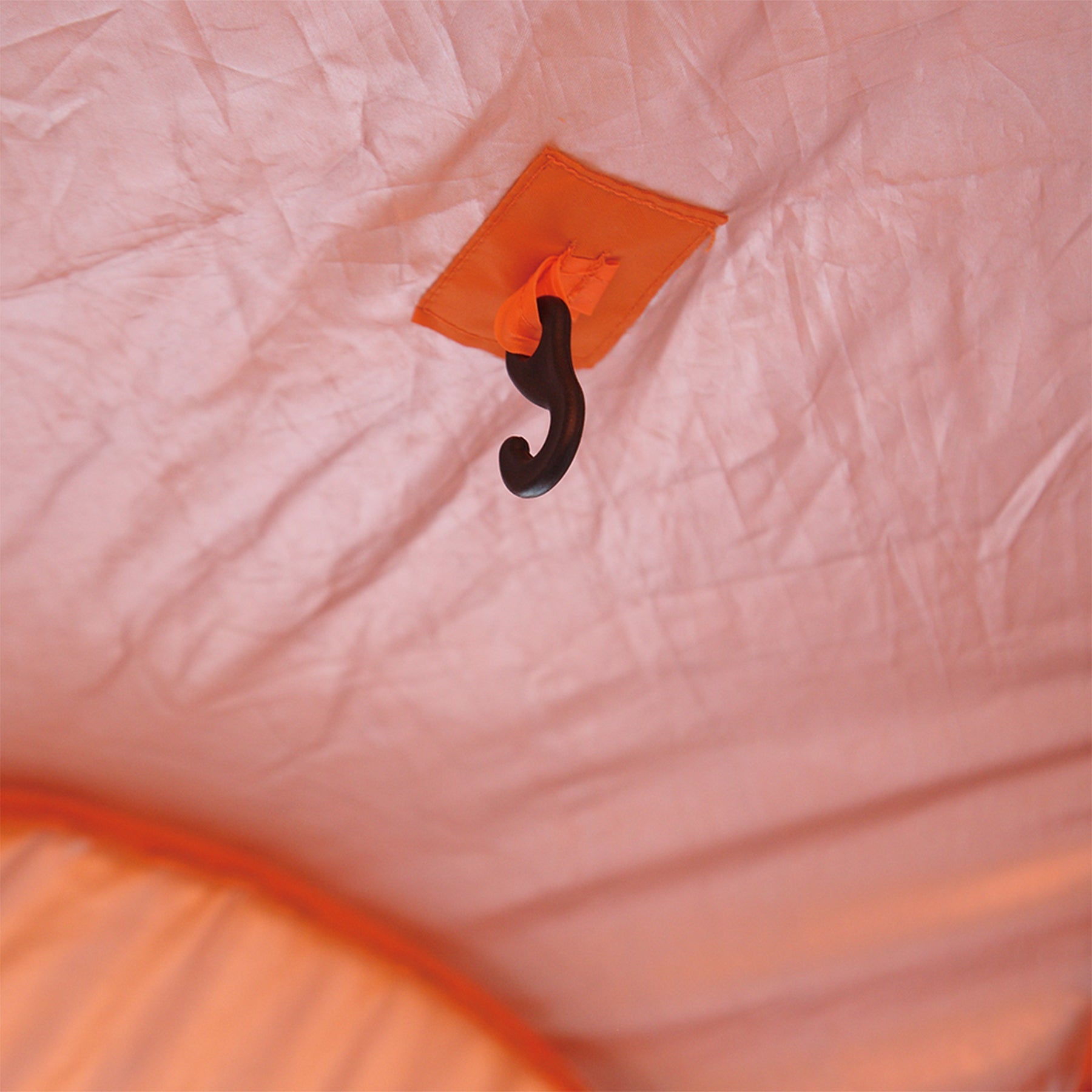 ●内部にはランタンフックやペーパーホルダー、換気口が側面に2ヶ所、後方に1ヶ所ついており、使用中の影が映りこまないシルバーコーティングが施されています。
