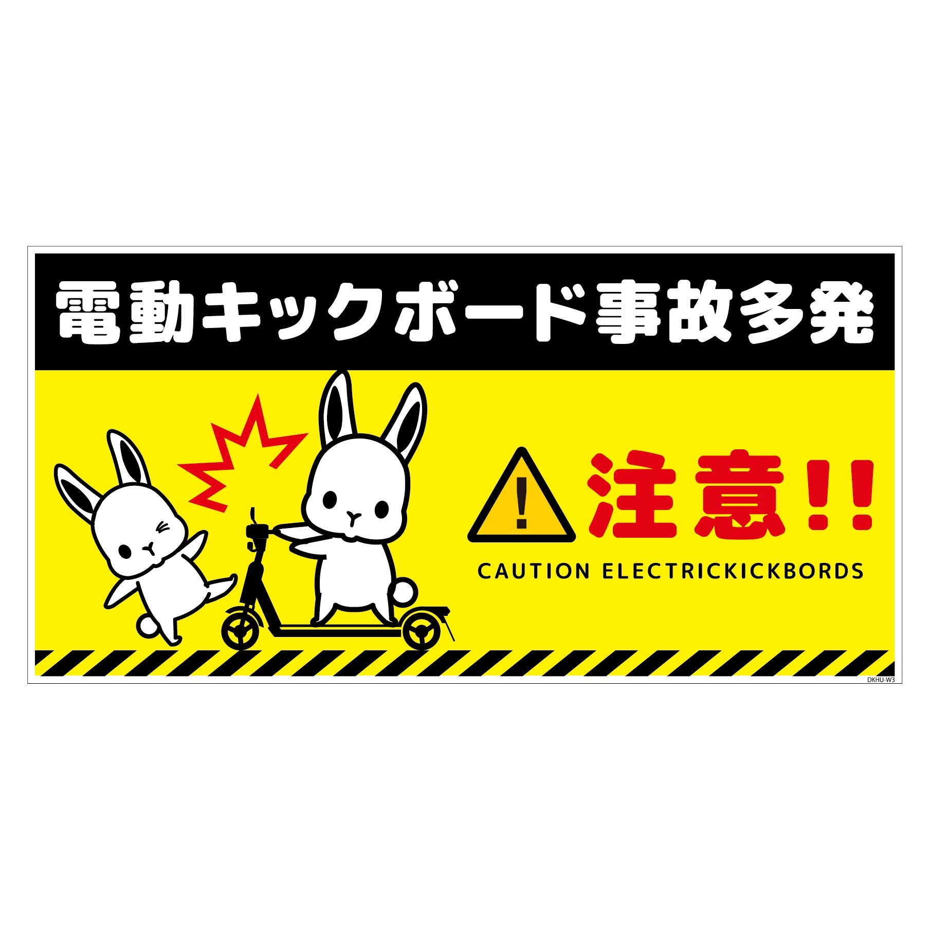 電動キックボード注意標識ウサギ ヨコステッカーDKHU-WS3