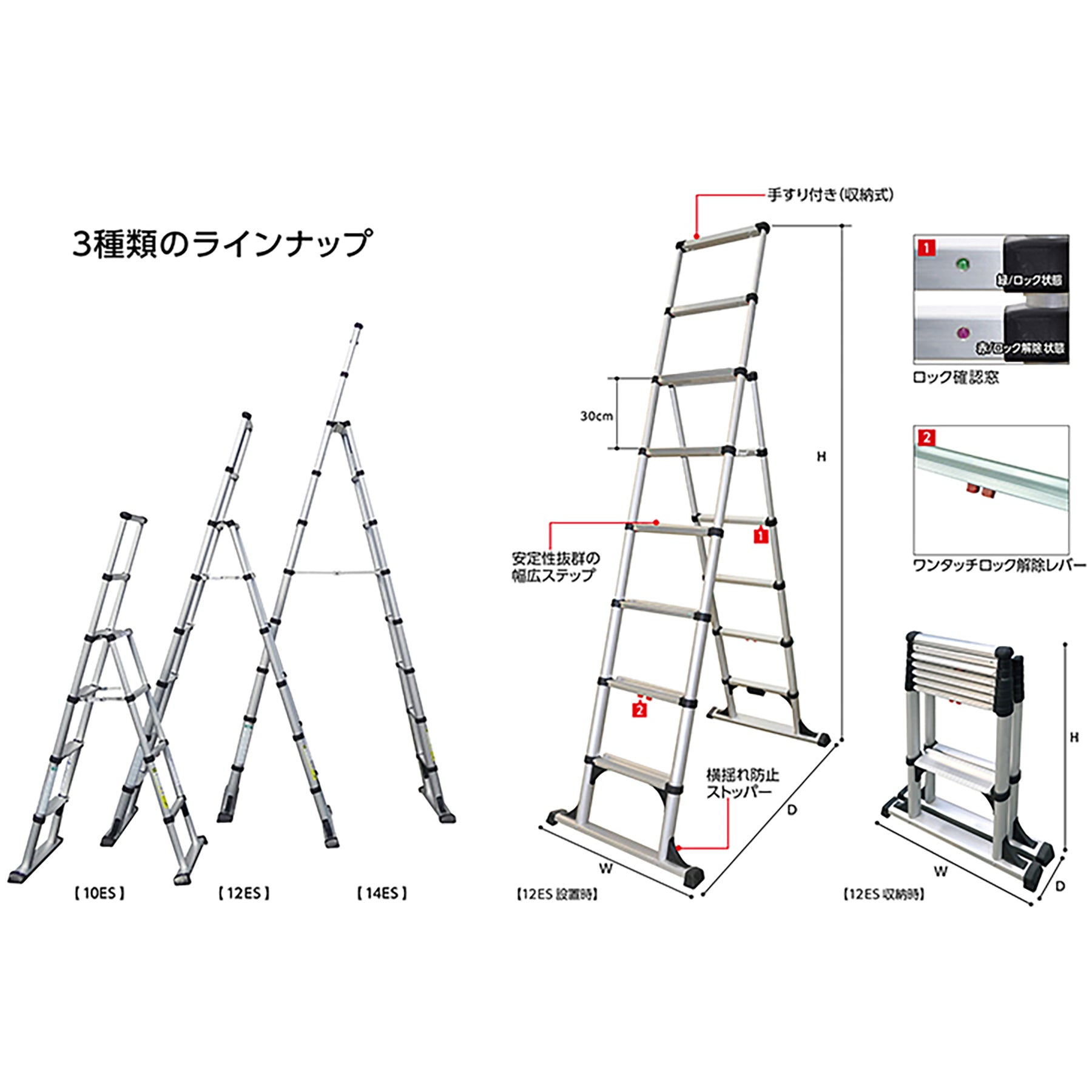 コンビラダーN14ES ワンタッチ収縮式アルミ製伸縮脚立